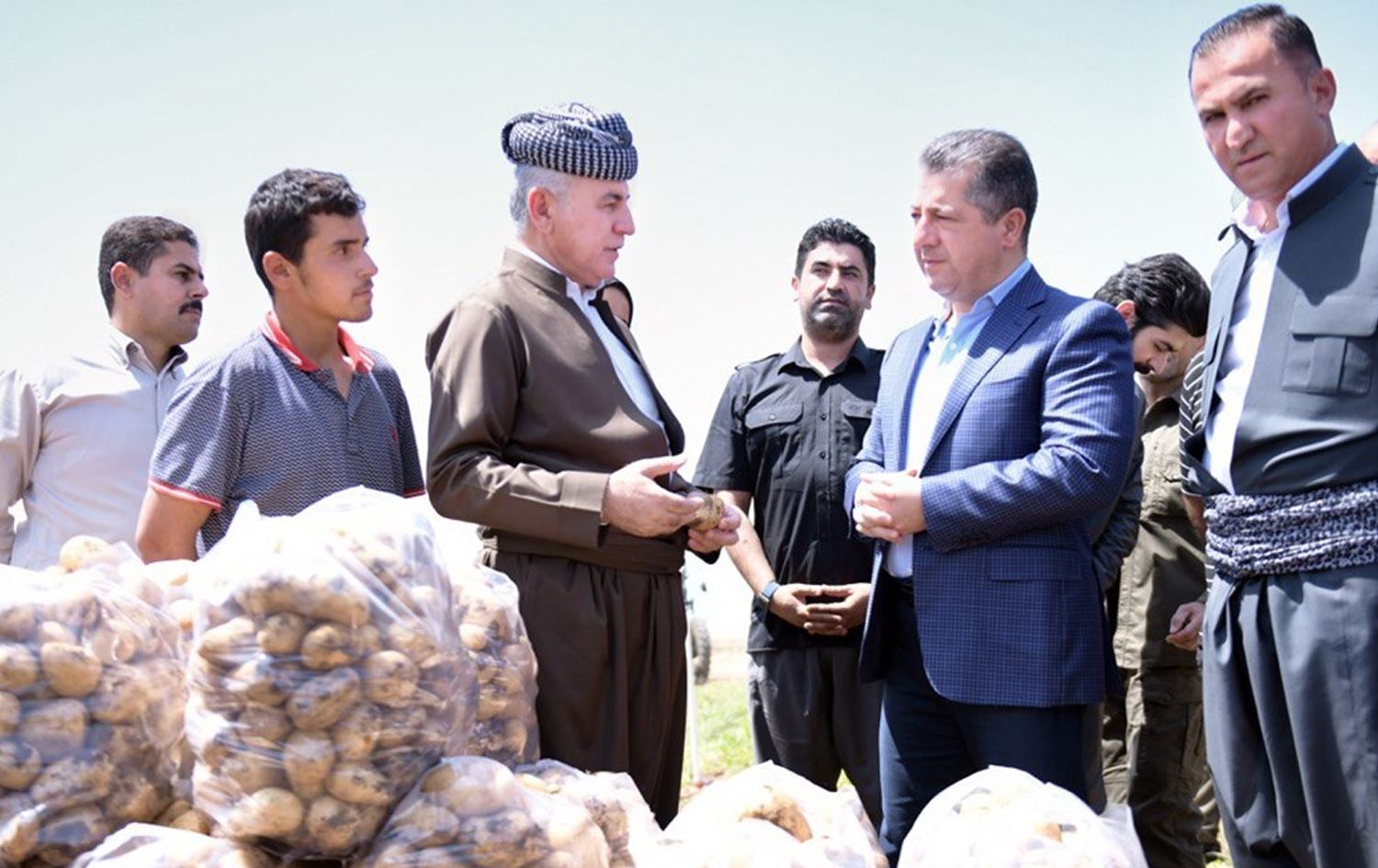 سەرۆکوەزیرانی هەرێمی کوردستان کێڵگەیەکی بەرهەمهێنانی پەتاتەی لە بەردەڕەش بەسەر کردەوە و لەگەڵ ژمارەیەک لە جووتیاران کۆبووەوە.