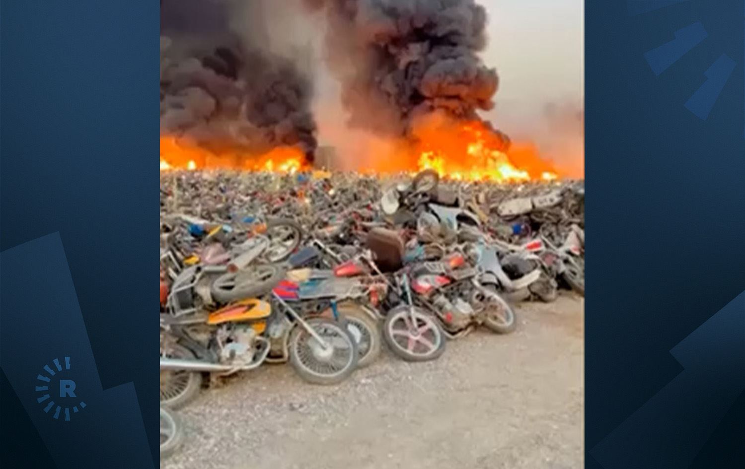 ئاگرێک لە شوێنی دەستبەسەرداگرتنی ئۆتۆمبێل کە سەر بە بەڕێوەبەرایەتی گشتیی هاتووچۆی هەولێرە کەوتەوە. گوتەبێژی بەرگریی شارستانی دەڵێت، نزیکەی 15 ماتۆڕسکیل سووتاون و نەگەیشتووەتە ئۆتۆمبێلەکان.