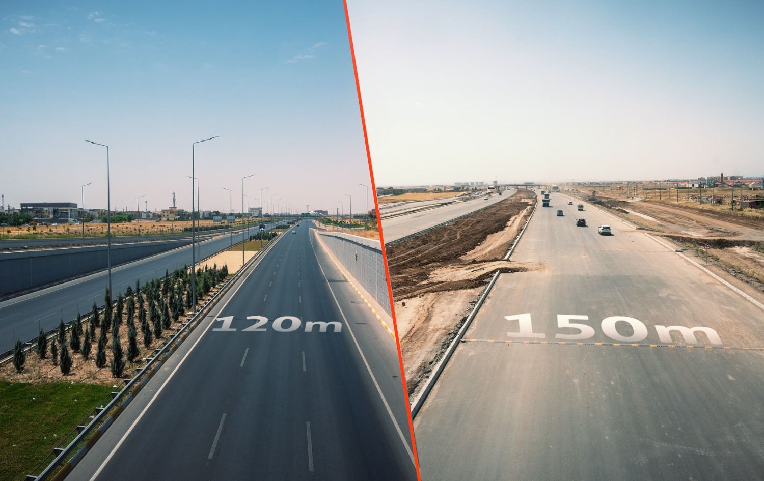 پڕۆژەی شەقامی 150 مەتری درێژییەکەی 70 کیلۆمەترە، واتە 42 کیلۆمەتر لە شەقامی 120 مەتری درێژترە، رێگەکە دووسایدە و هەر سایدێکی 20 مەترە، واتە پانی شەقامەکە 40 مەتر دەبێت. ئەندازیار ئەمیر عەبدولخالق، بەڕێوەبەری پڕۆژەی شەقامی 150 مەتری بە رووداوی راگەیاند، پڕۆژەی شەقامی 150 مەتریی خێرا، درێژییەکەی بەگشتی 70 کیلۆمەترە.