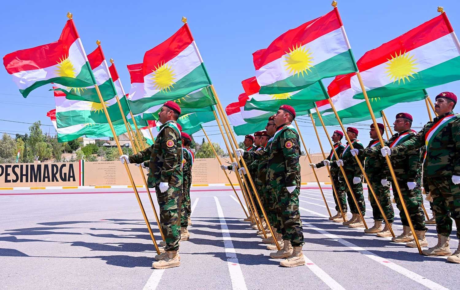 ژمارەیەک پێشمەرگە لە مەراسیمی دەرچوون، لە بنکەی مەشقی کانی قرژاڵە - هەولێر، رۆژی 22-6-2023. وێنە: بڵند تاهیر - رووداو
