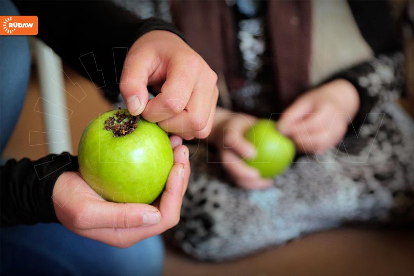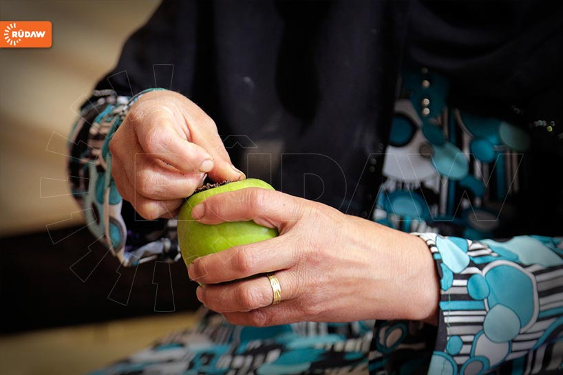 سەیوان سەعیدیان، خاوەنی بیرۆکەی بە دیاریکردنی سێوی مێخەکڕێژ، بە هاوکاری پەنابەرانی رۆژئاوای کوردستان لە کەمپی دارەشەکران، بەمەبەستی یارمەتیدانی پەنابەران، ئەم سێوە ئامادەدەکات.