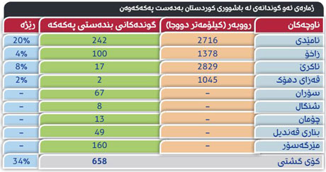 ئەو رووبەرەی لە سنووری پارێزگای هەولێر بەدەست پەكەكەوەیە كەمتر نییە لەوەی دهۆك، بەپێی زانیارییەكان 240 گوندی سنووری پارێزگای هەولێر لەژێر دەستی پەكەكەدایە.