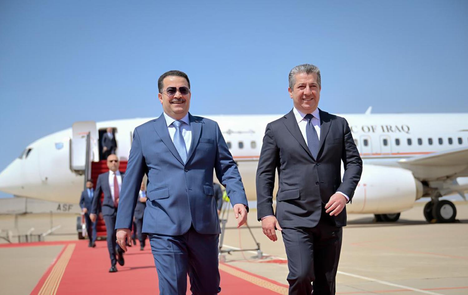 کەمێک پێش ئێستا محەممەد شیاع سوودانی، سەرۆکوەزیرانی عیراق بە سەردانێک گەیشتە هەولێر و لەلایەن مەسرور بارزانی، سەرۆکوەزیرانی هەرێمی کوردستانەوە لە فڕۆکەخانەی نێودەوڵەتیی هەولێر پێشوازیی لێکرا.