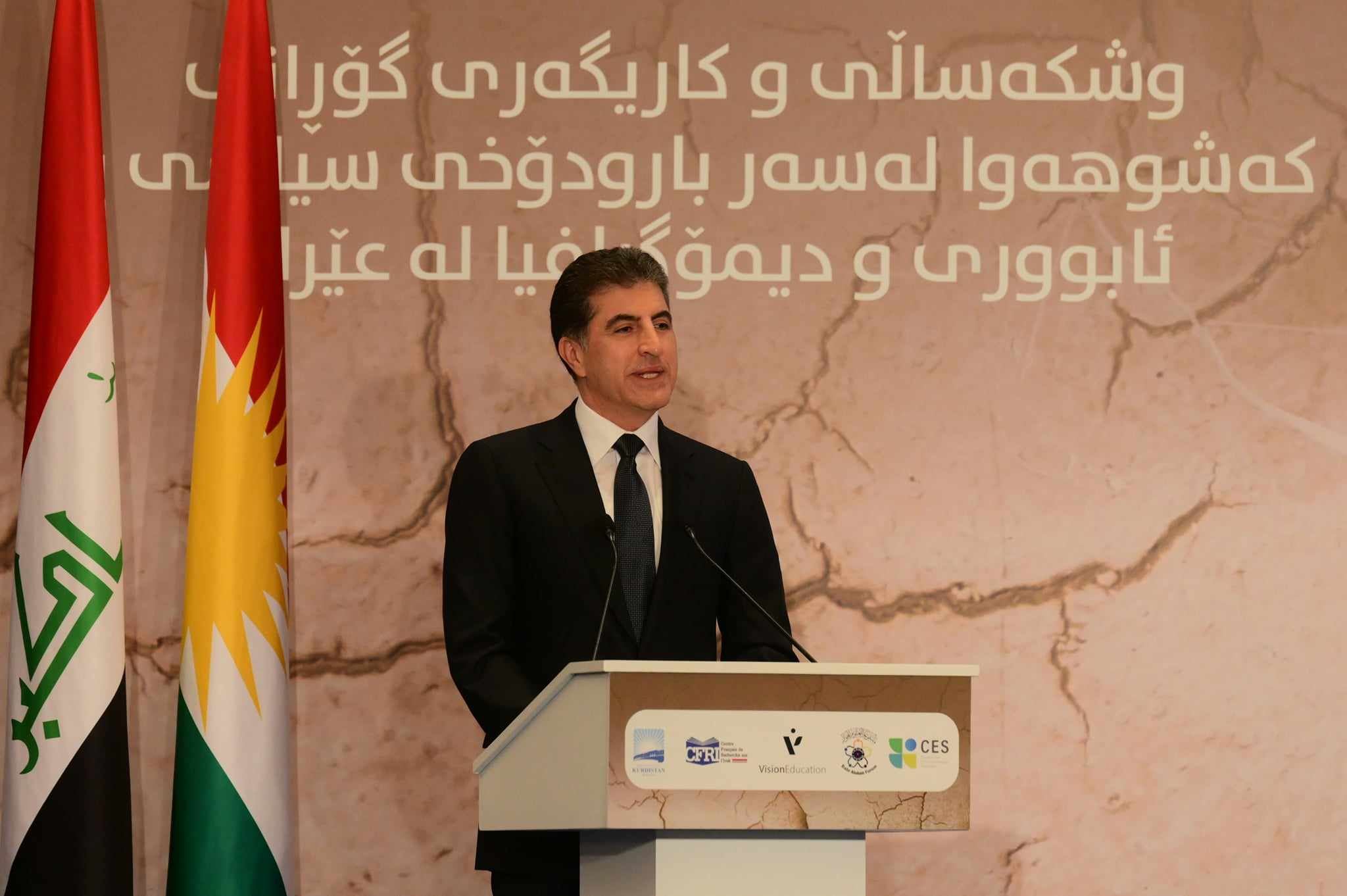 گوتارەکەی نێچیرڤان بارزانی لە چوارچێوەی بەشداریکردنی بوو لە کۆنفرانسی وشکەساڵی و کاریگەریی گۆڕانی کەشوهەوا لەسەر سیاسەت، ئابووری، دیمۆگرافیای عێراق، کە دوێنێ لە هەولێر دەستیپێکرد و ئەمڕۆش (یەکشەممە، 12-5-2024) بەردەوامە.