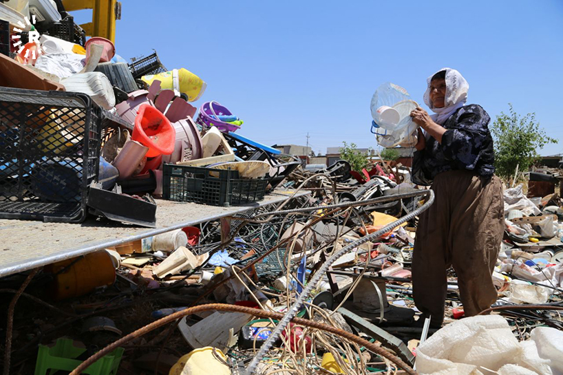 فاتیمهی تەمەن 66 ساڵ ماوەی 20 ساڵە لە شارۆچکەی پیرەمەگروون لە سلێمانی لهگهڵ كوڕ و بووكهكهى بهیانى تاوەکو ئێواره كارى کۆكردنهوهى ئاسن، دهبه و پلاستیك دهكهن، فاتیمه باس لهكارهكهى دهكات و دهڵێت، نهبوونى سەرچاوەی بژێوى وایلێكردووم ئهو كاره بكهم.