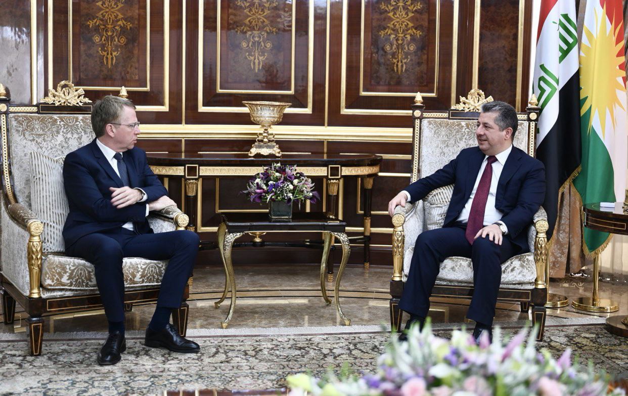 مەسرور بارزانی، سەرۆکی حکومەتی هەرێمی کوردستان پێشوازی لە پاتریک دۆرێل، باڵیۆزی نوێی فەرەنسا لە عێراق کرد