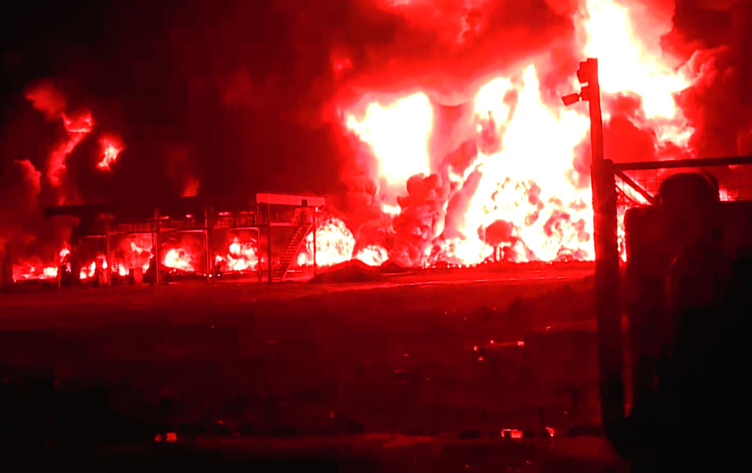 دوای زیاتر لە سێ کاژێر هەوڵدان بۆ کوژاندنەوەی، ئاگرەکە زیاتر تەشەنەی سەندووە و مەترسیی گڕگرتن لەسەر ژمارەیەک تانکیی نزیک شوێنەکە هەیە. تیمەکانی بەرگریی شارستانی هەوڵدەدەن بە ئاوپڕژێن، تانکییەکان سارد بکەنەوە بۆ ئەوەی رێگە لە سووتانیان بگرن.