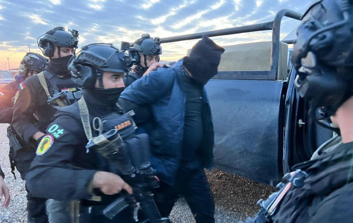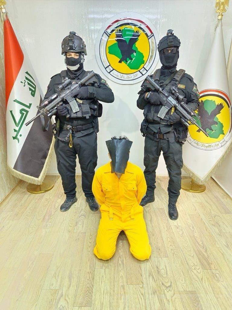 وێنەی کاتی دەستگیرکردنی یەکێک لە تۆمەتبارەکان کە لەلایەن دەزگای دژەتیرۆری عێراق بڵاوکراوەتەوە
