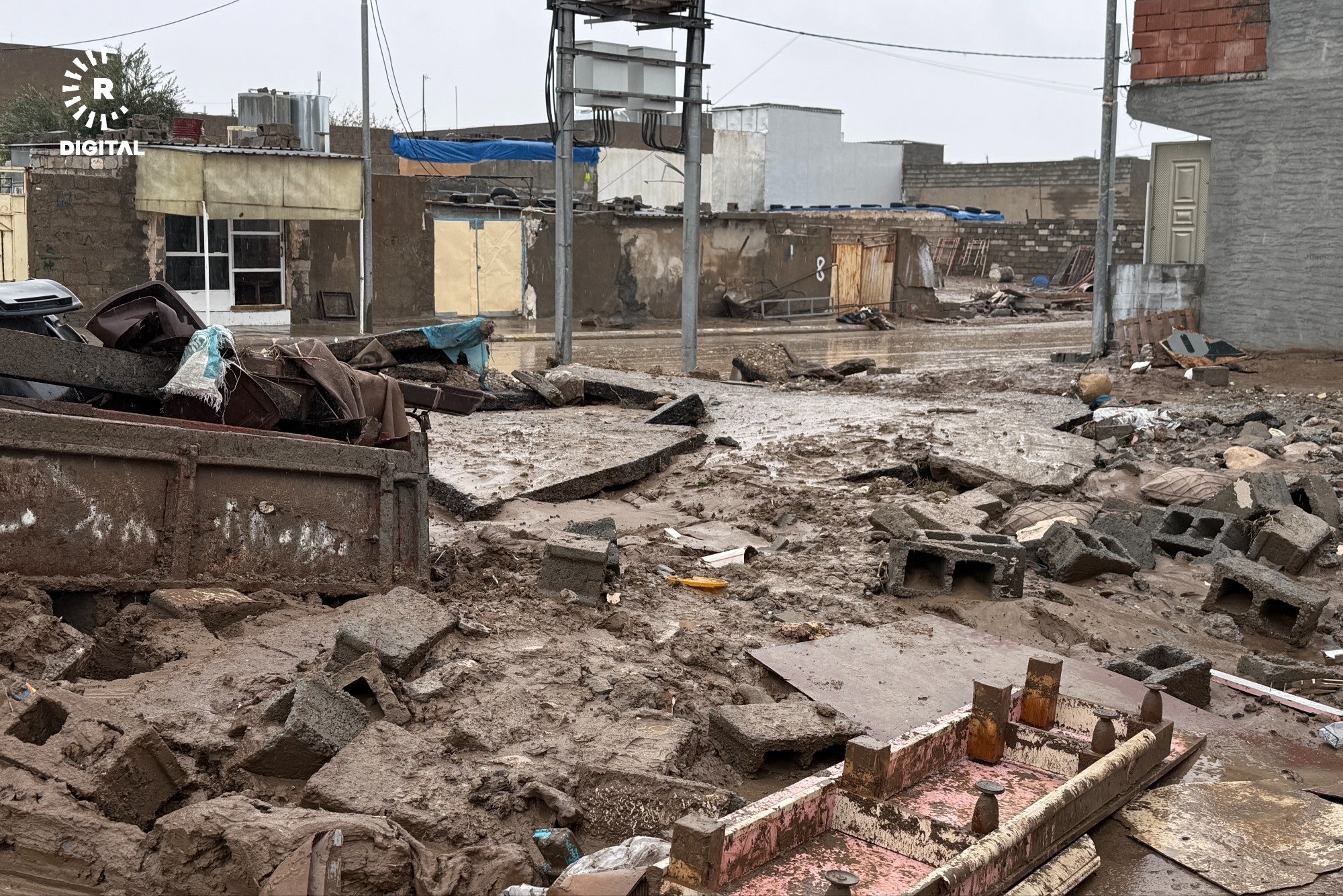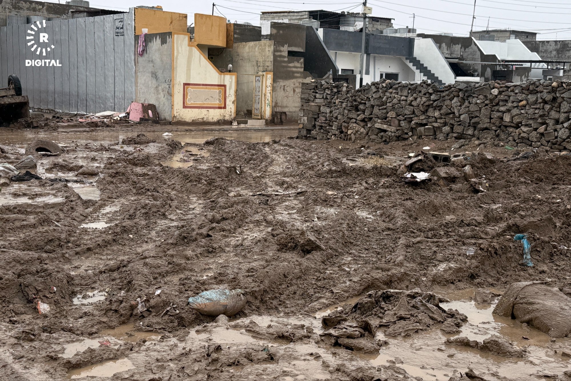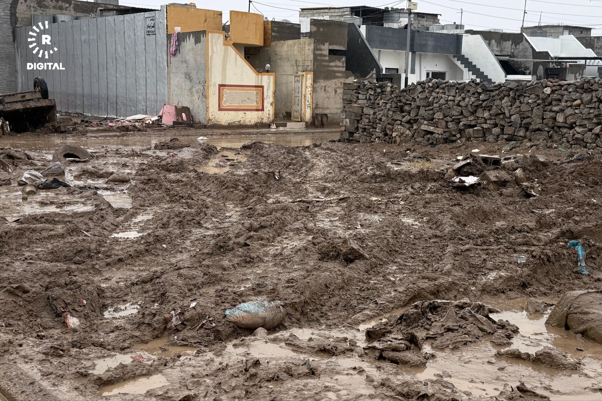 کاتێک بە بەشێک لە گەڕەکەکانی ئەو ناحیەیەدا دەڕۆیت، قوڕ و لیتە و وێرانەی لافاو باڵی بەسەریاندا کێشاوە.