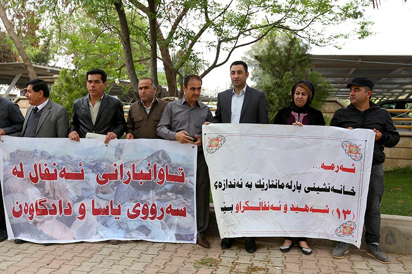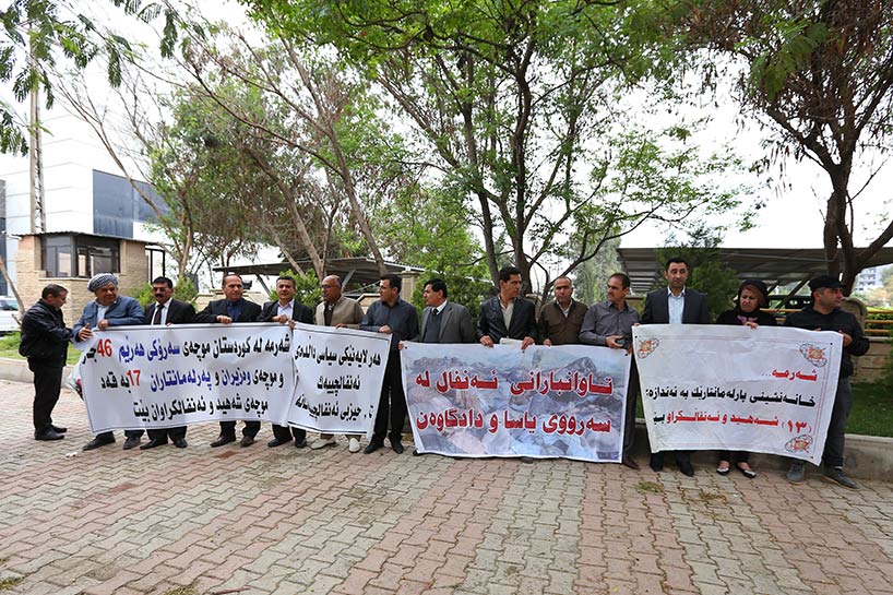 رێکخراوەکانی ئەنفال و رێکخراوە مەدەنییەکان ناڕەزایەتییان بەرامبەر بە دەستگیرنەکردنی تاوانبارانی ئەنفال دەربڕی و گوڵی رەشیان پێشکەش بە ئەنجوومەنی دادەوەری هەرێمی كوردستان كرد لە شاری هەولێر.