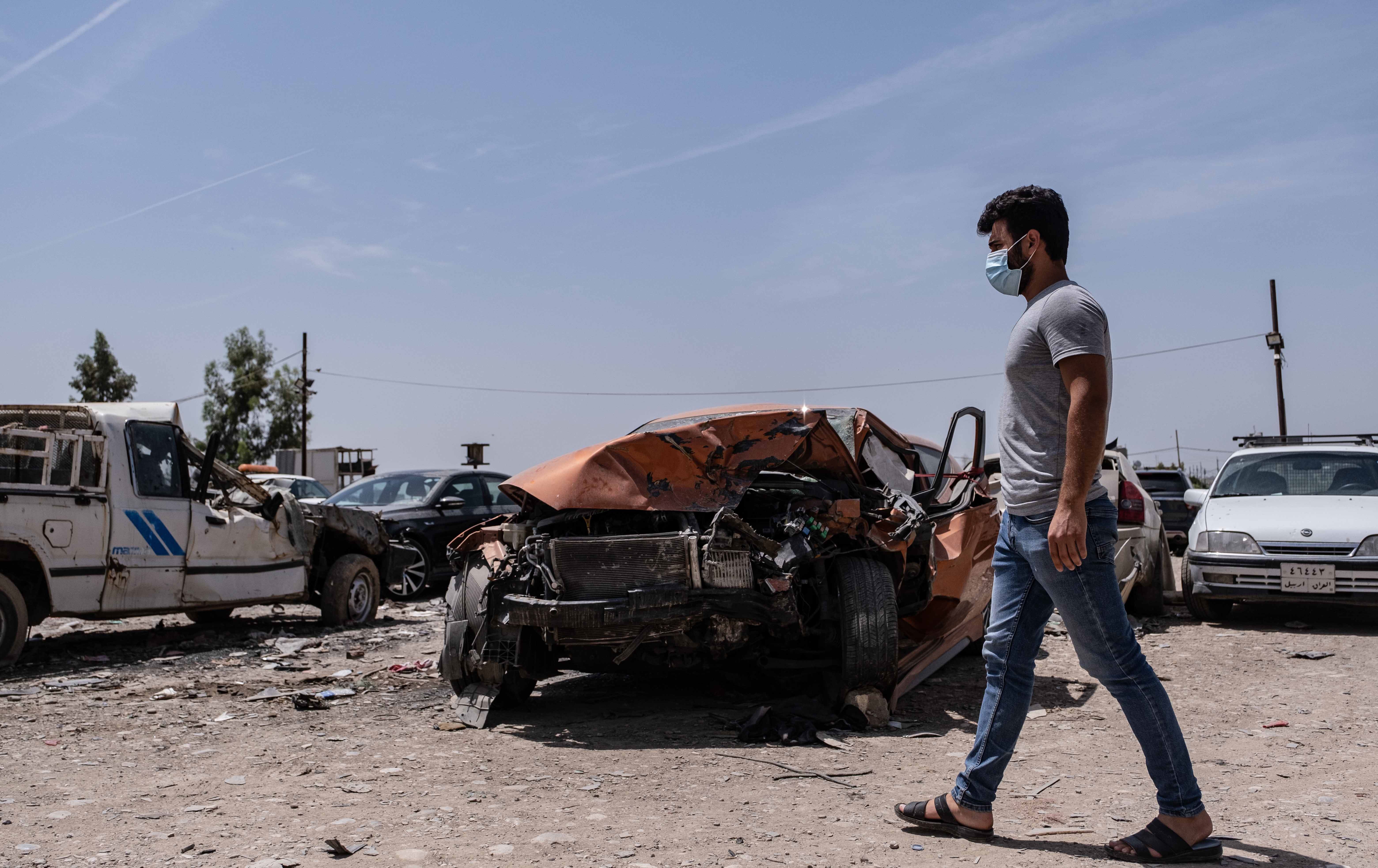 هاونیشتمانییەک بە بەردەم چەند ئۆتۆمبێلێکدا تێدەپەڕێت کە تووشی رووداوی هاتووچۆ بوون. وێنە: بڵند تاهیر - رووداو