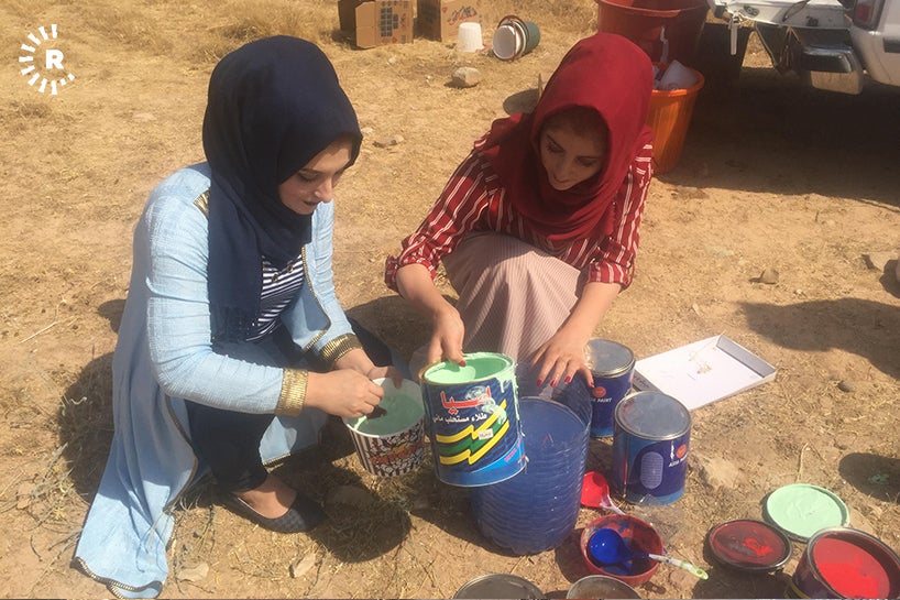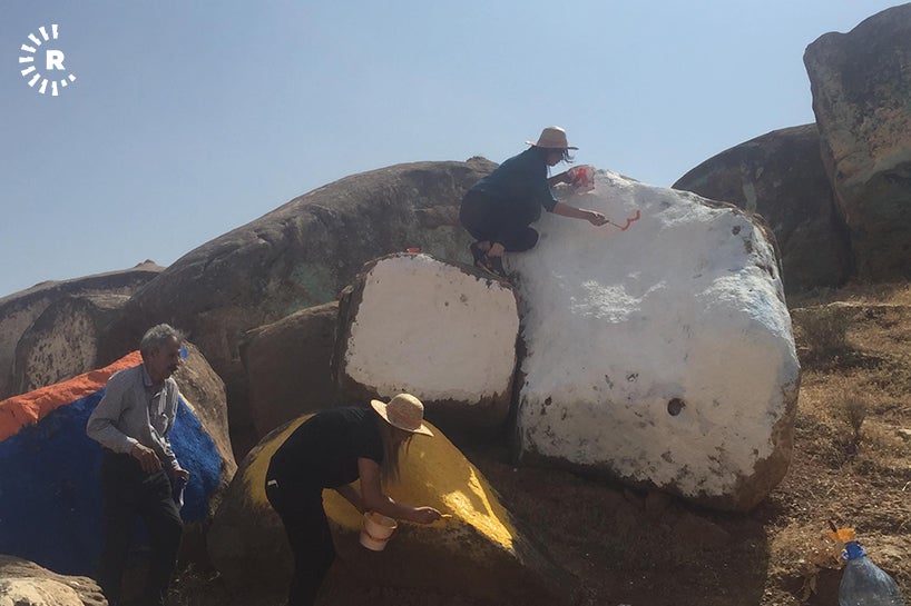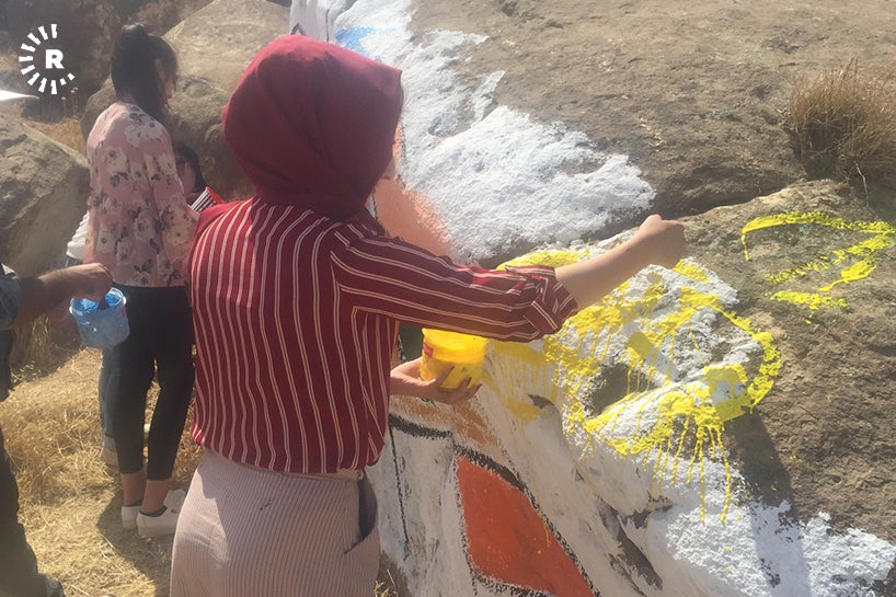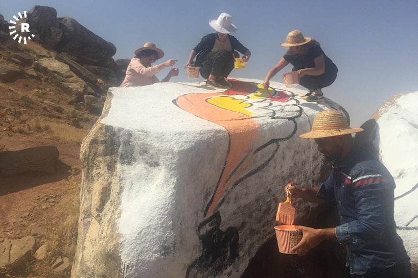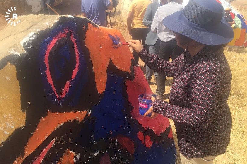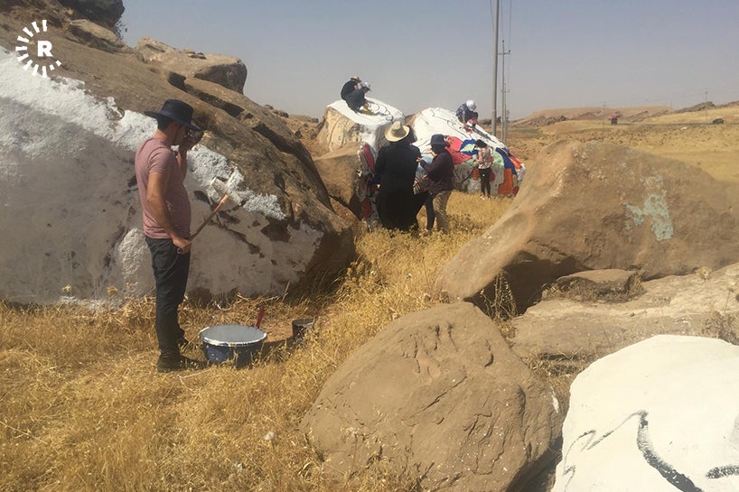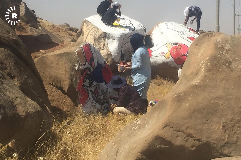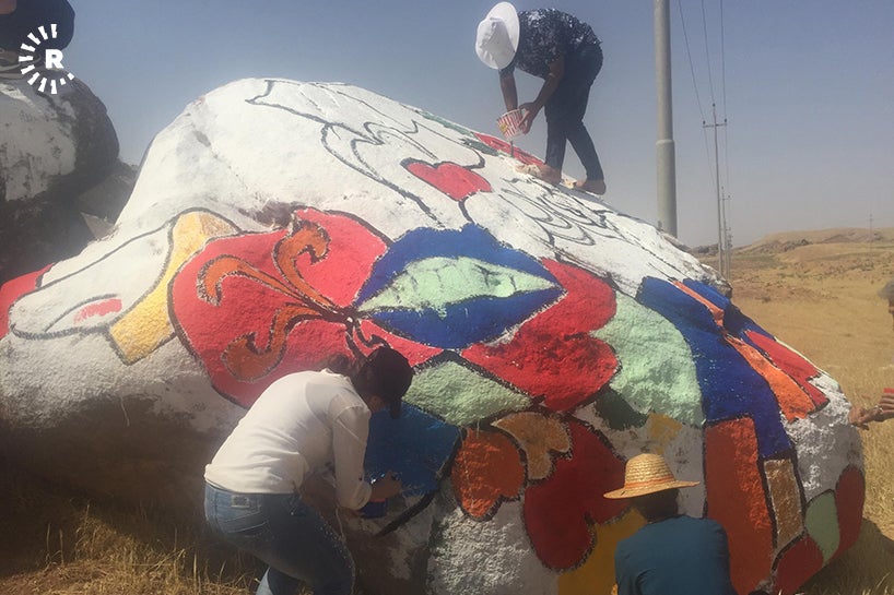 ئەو بەردانەی لە دوای شەڕی ناوخۆوە لە دێگەڵە وەکو هێمایەکی ئاشتی رەنگ کرابوون، ئەمڕۆ (پێنجشەممە، 13-9-2018) جارێکی دیکە رەنگکرانەوە.