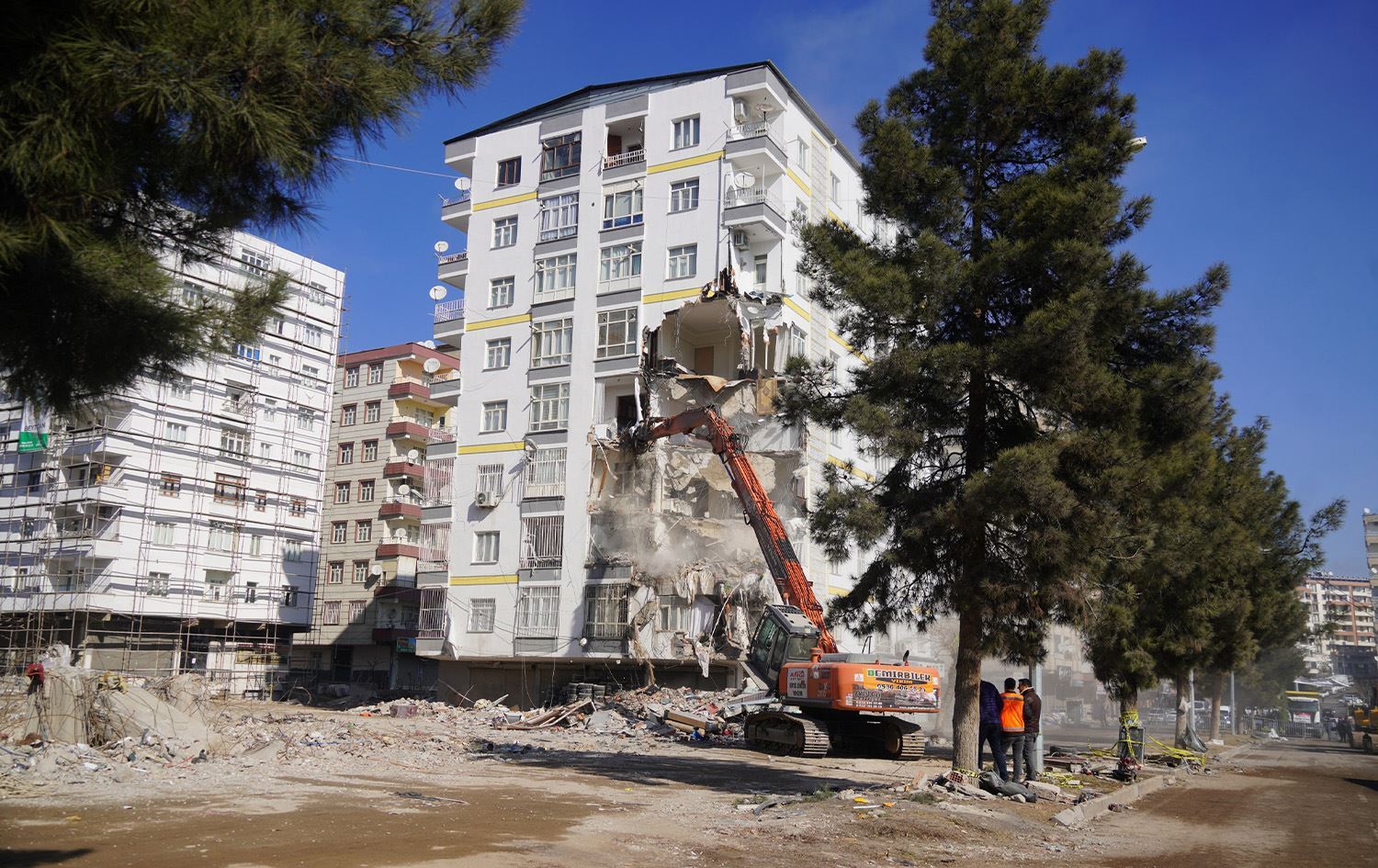 کاتی رووخانی باڵەخانەیەک لە ئامەد کە بەهۆی بوومەلەرزەوە زیانی زۆری بەرکەوتبوو. وێنە: ئەرشیڤ