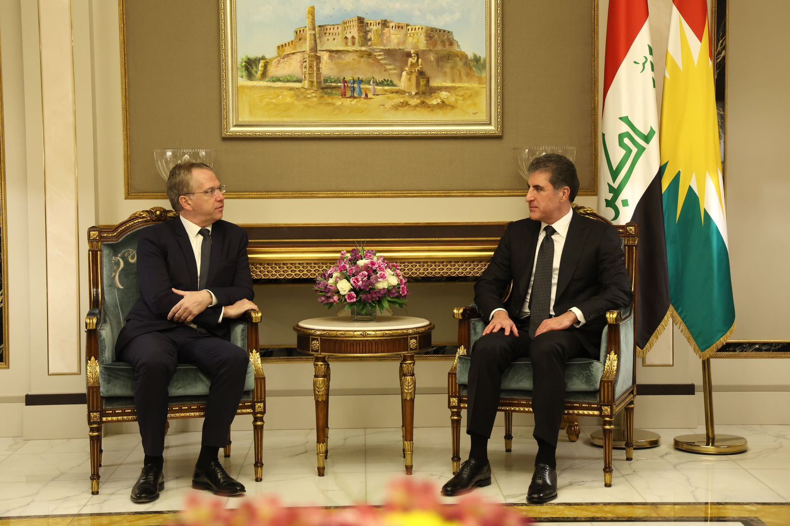 سەرۆکی هەرێمی کوردستان و باڵیۆزی فەرەنسا لە عێراق جەخت لەسەر گرنگیی پێکهێنانی حکومەتێک دەکەنەوە کە وهڵامگۆی خواستەکانی خەڵک و ئامانجەکانیان بێت لە گەشەپێدان و سەقامگیری.