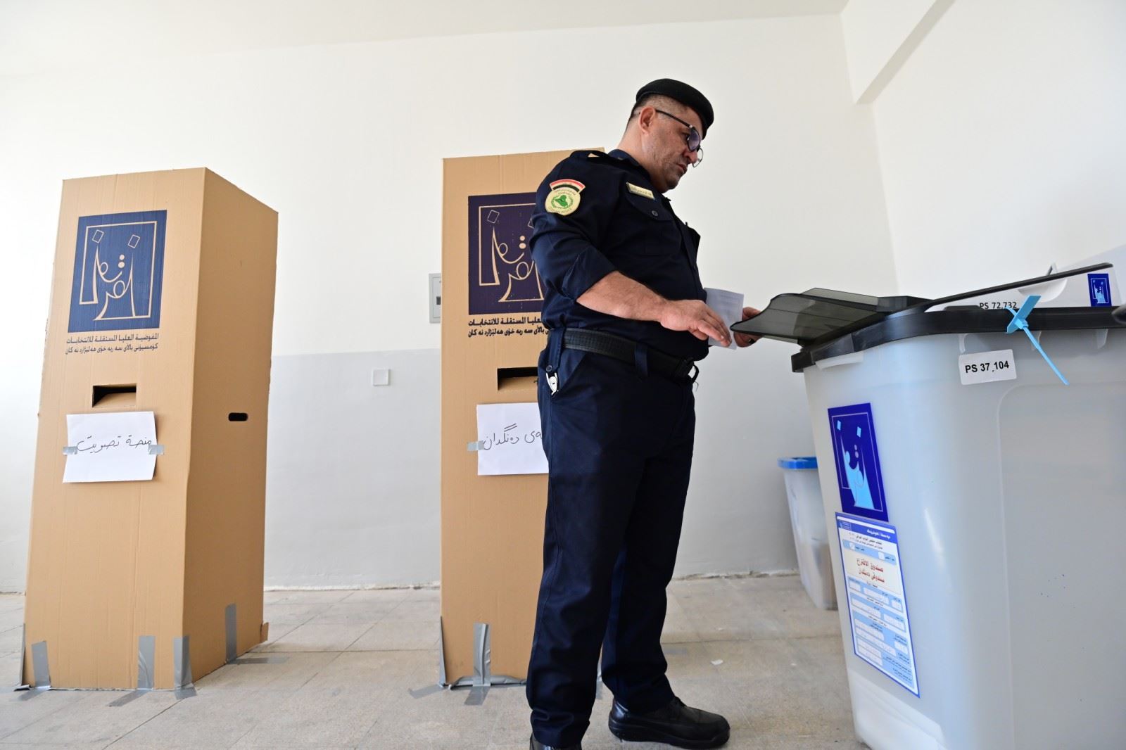 پۆلیسێک لەکاتی دەنگدانی تایبەت لە هەڵبژاردنی ئەنجوومەنی نوێنەرانی عێراق لە 8-10-2021، وێنە: بڵند تاهیر - رووداو