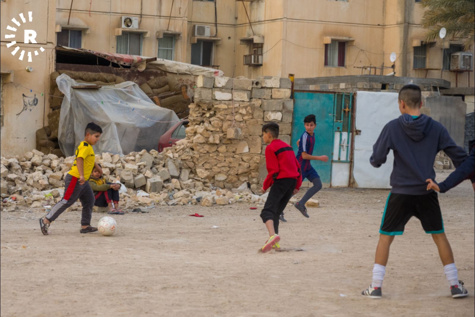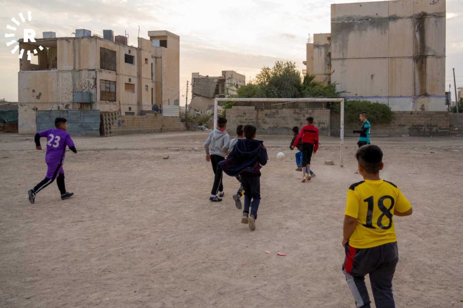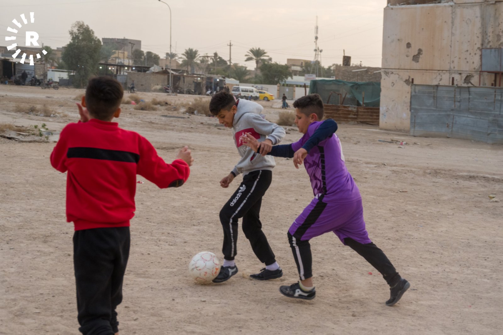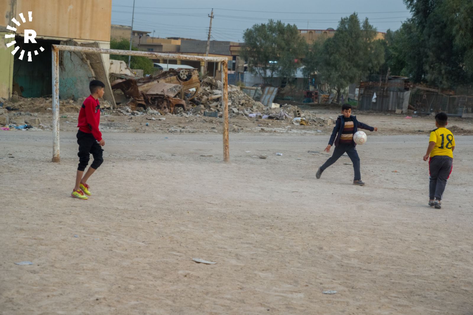 هێشتا سیمای شەڕ، ماڵوێرانی و کاولکاری بەو شارەوە دیارە، لەنێو کەلاوە رووخاوەکاندا ژمارەیەک منداڵ یاریی تۆپی پێ دەکەن و ئەو مەیدانەیان کردووەتە یاریگە.