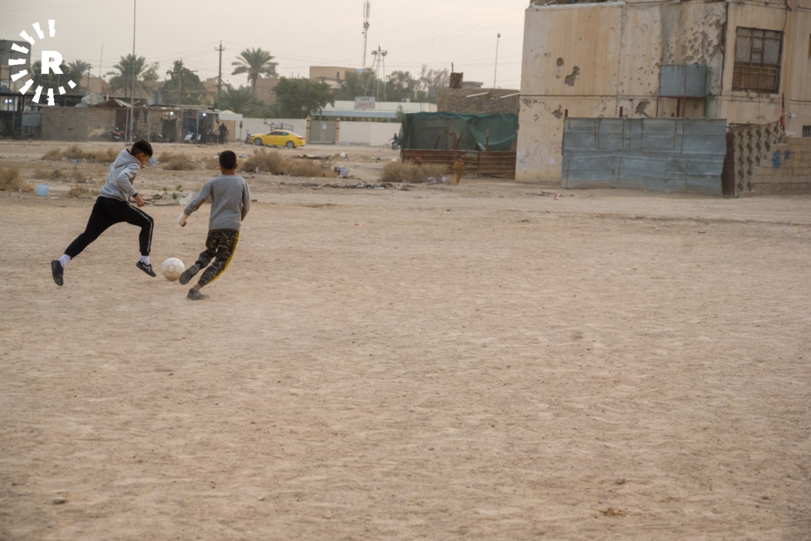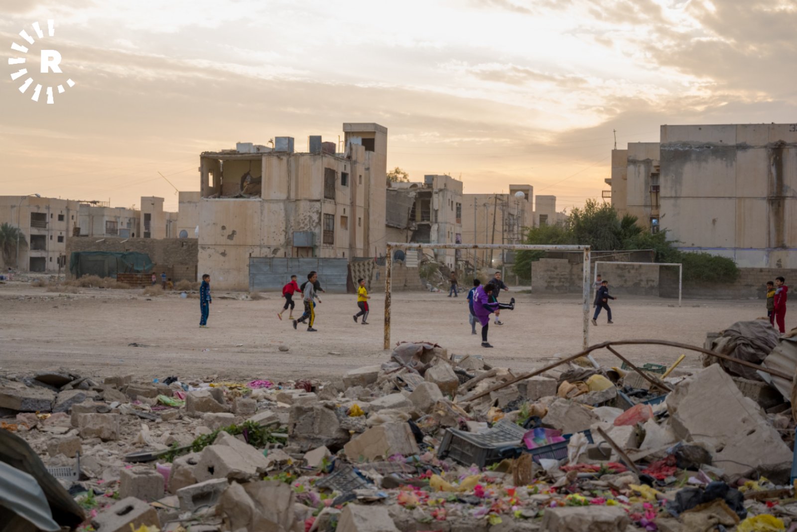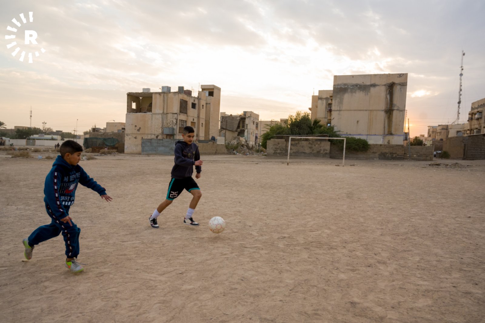 هێشتا سیمای شەڕ، ماڵوێرانی و کاولکاری بەو شارەوە دیارە، لەنێو کەلاوە رووخاوەکاندا ژمارەیەک منداڵ یاریی تۆپی پێ دەکەن و ئەو مەیدانەیان کردووەتە یاریگە.