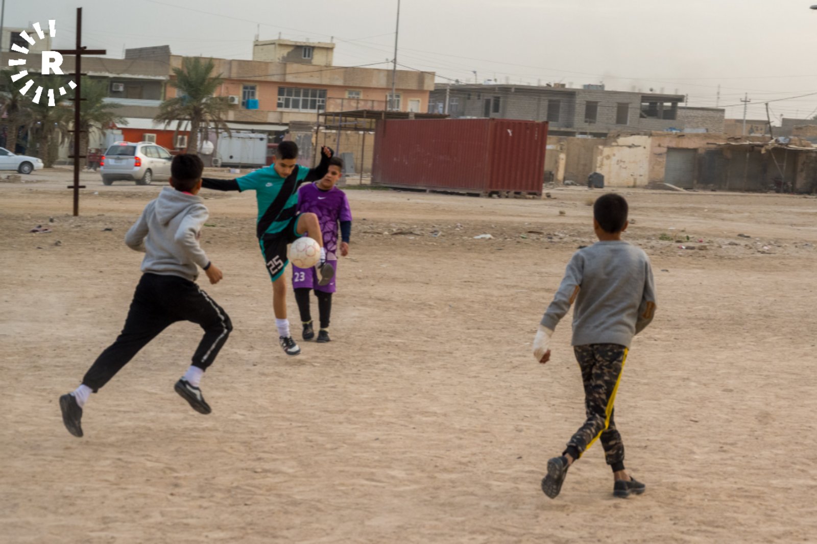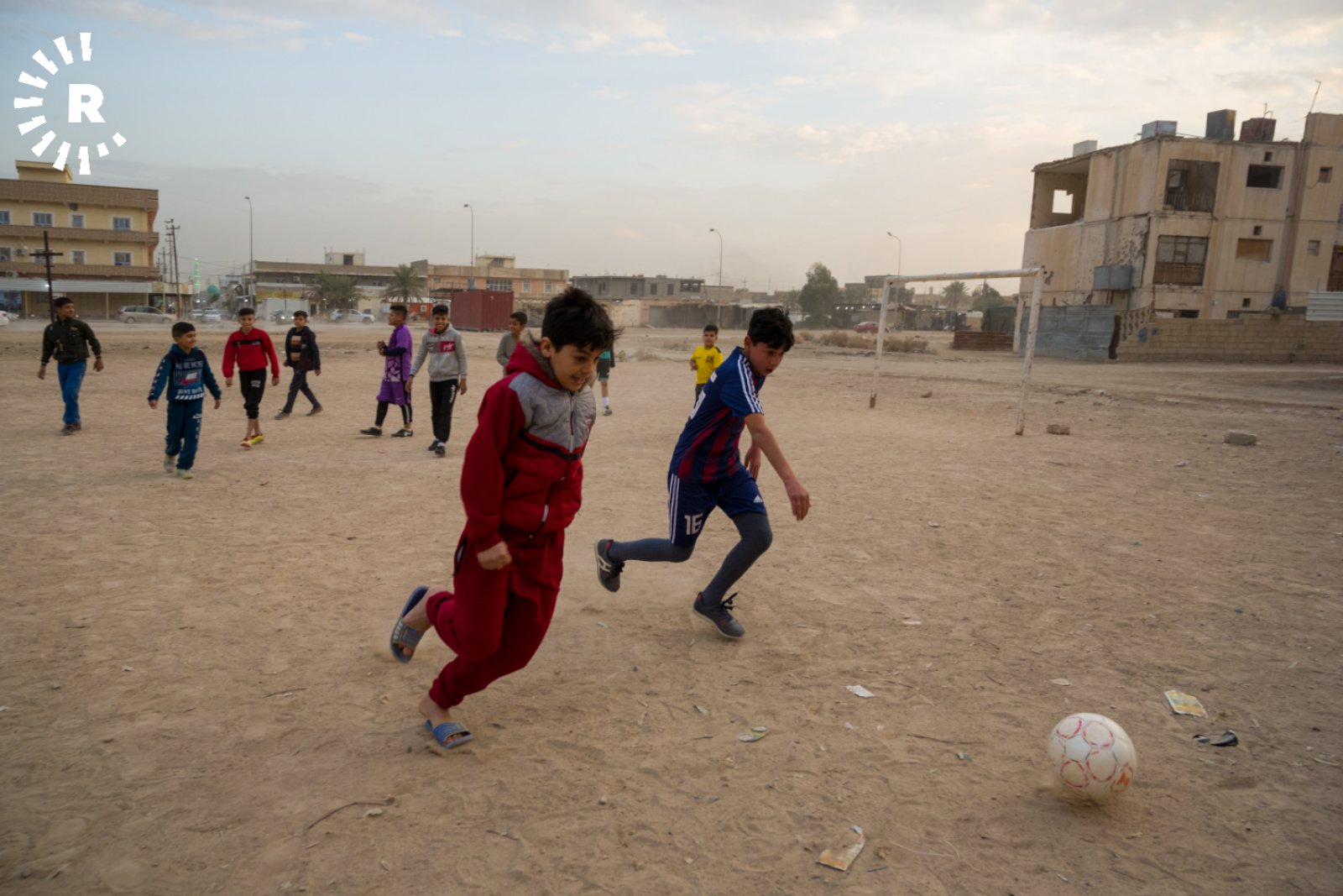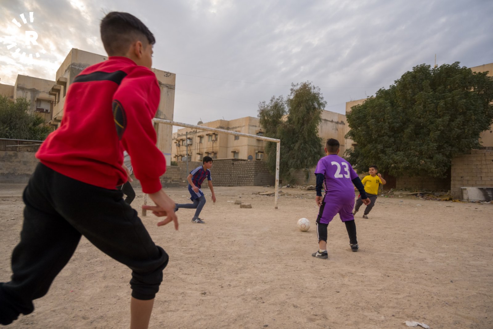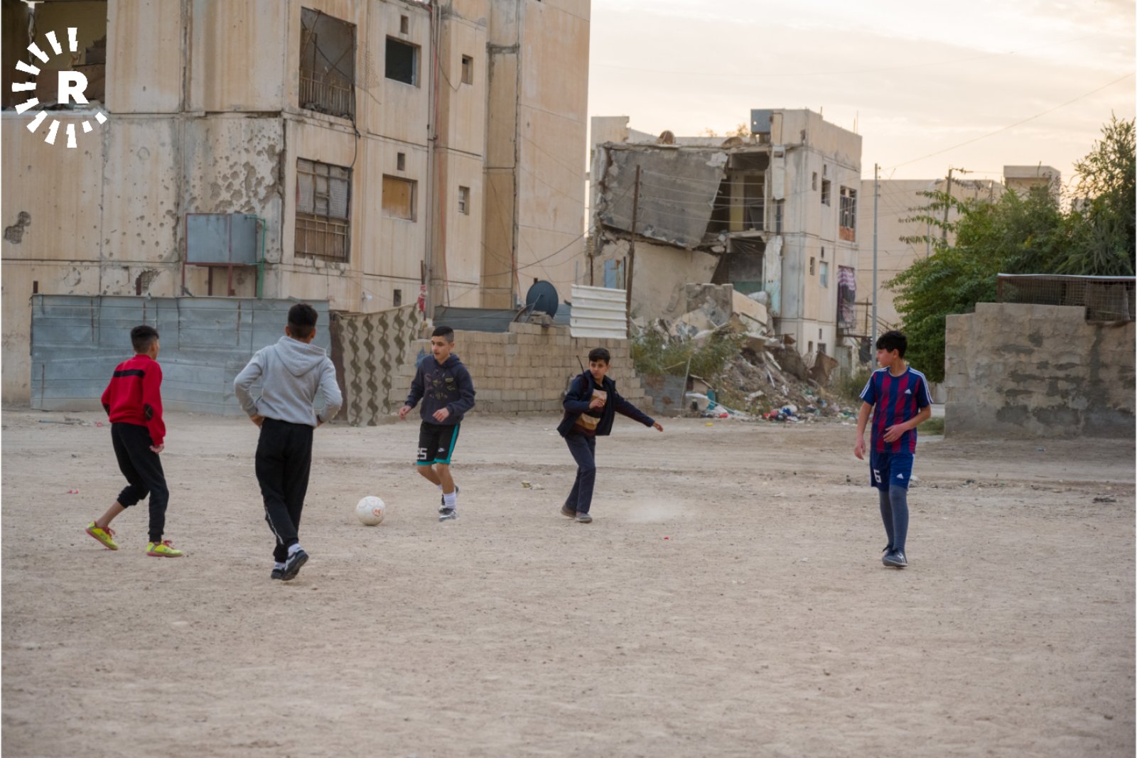 هێشتا سیمای شەڕ، ماڵوێرانی و کاولکاری بەو شارەوە دیارە، لەنێو کەلاوە رووخاوەکاندا ژمارەیەک منداڵ یاریی تۆپی پێ دەکەن و ئەو مەیدانەیان کردووەتە یاریگە.