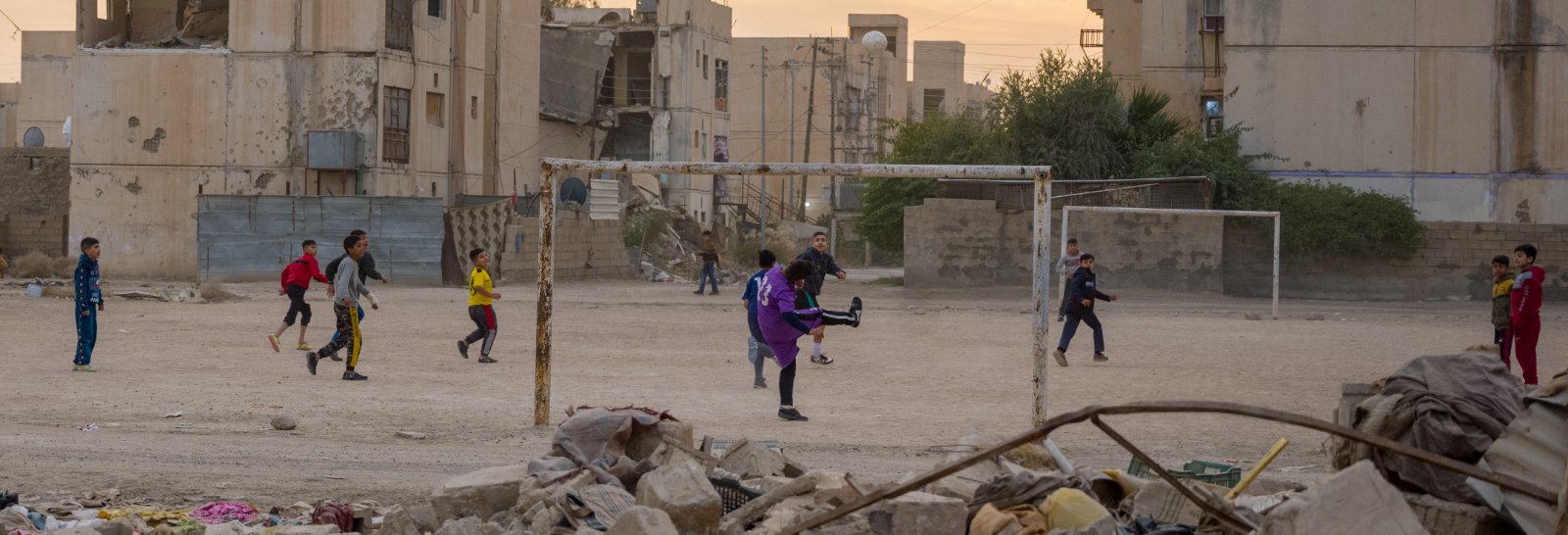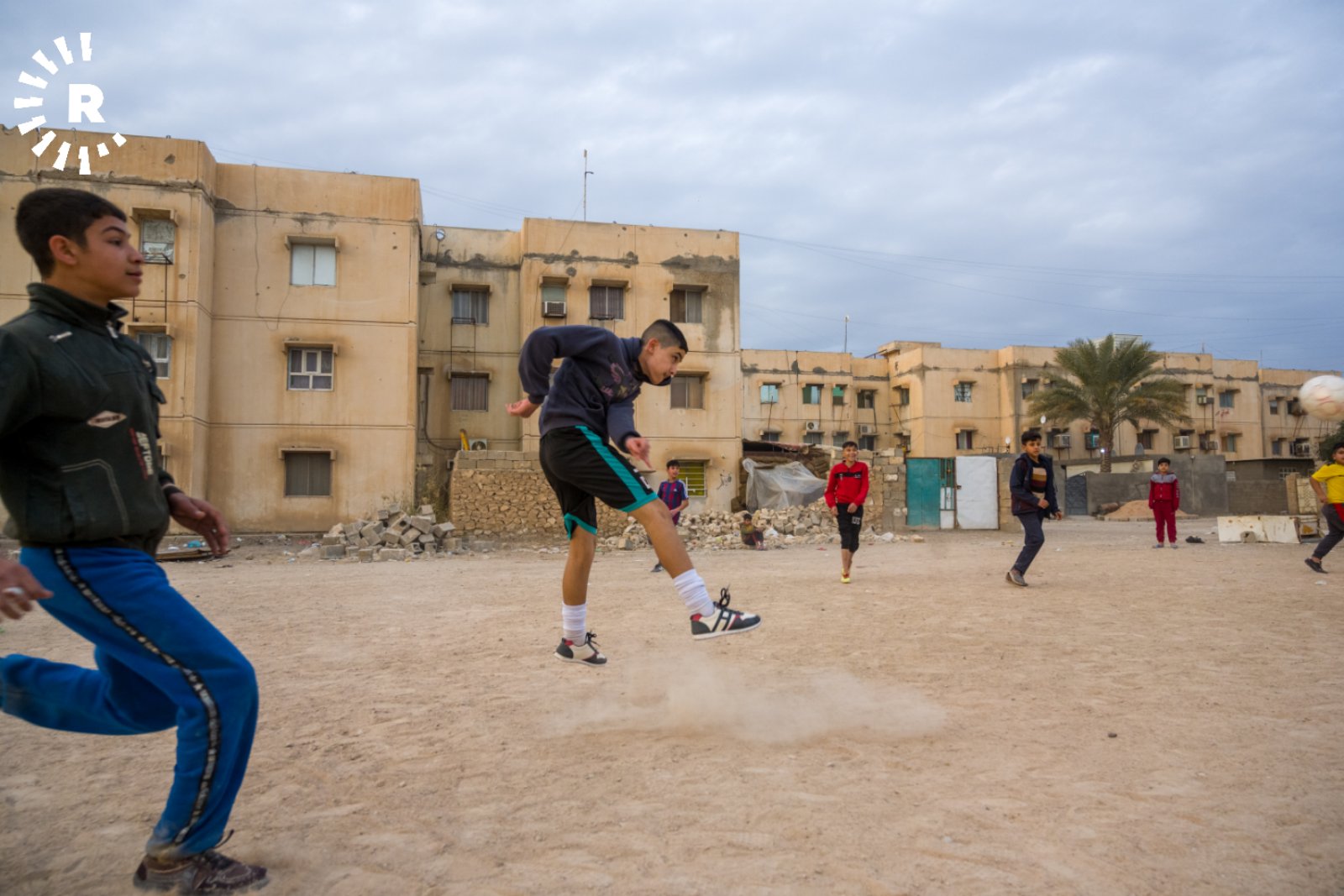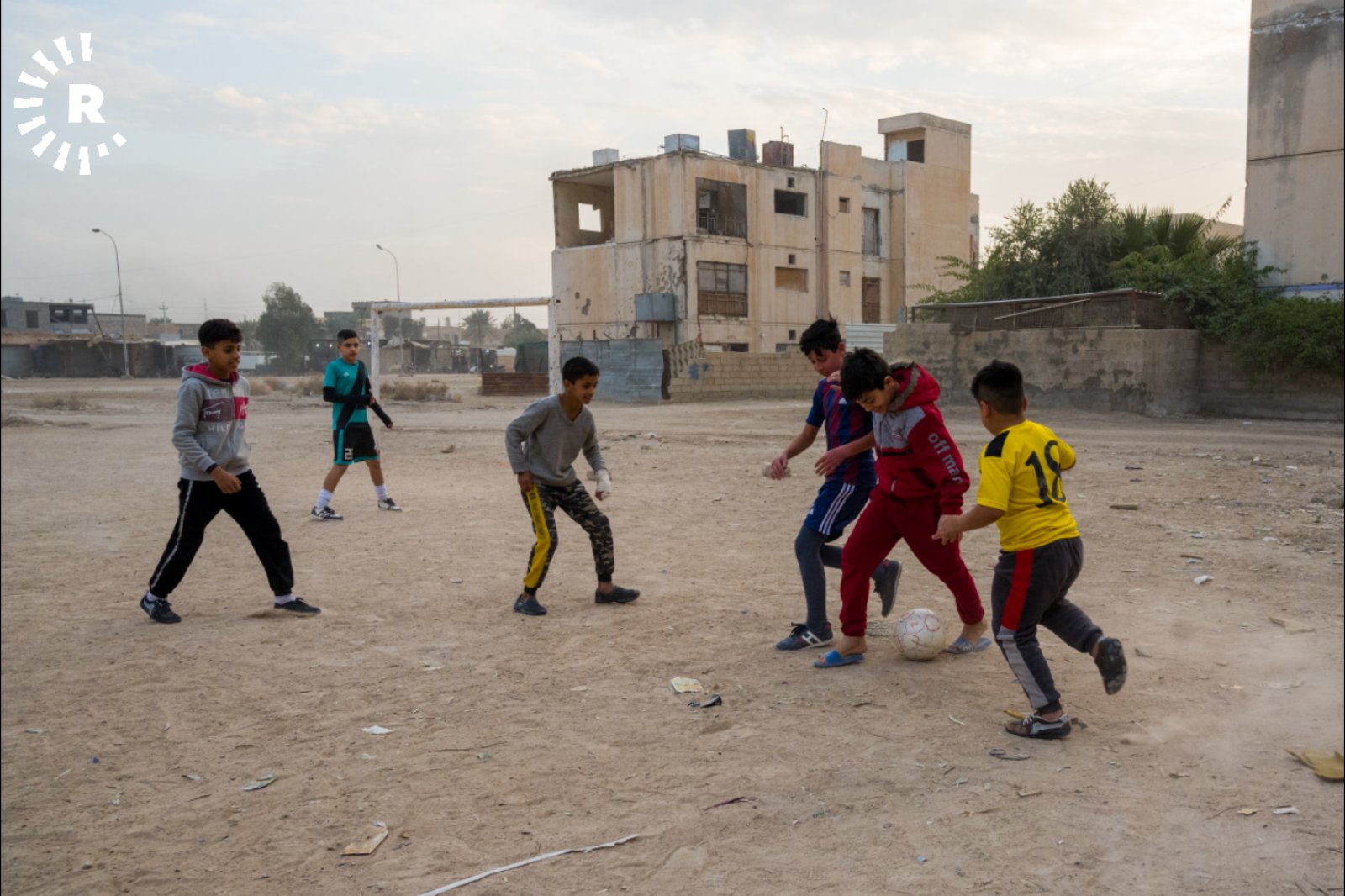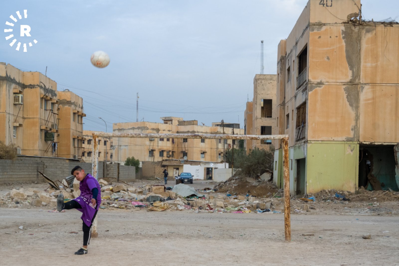وێنەکان لە گەڕەکی تەئمیمە لە شاری رومادی، کە 108 کیلۆمەتر لە بەغدای پایتەختی عێراقەوە دوورە، ژیان لەو گەڕەکەدا لە ژیانێکی ئاسایی ناچێت، بەڵکو بەشێکی زۆری دانیشتووانی ئەو گەڕەکە لەنێو کەلاوە بە کولـلەمەرگی دەژین، ئەمەش رەنگدانەوەی بەسەر هەموو کایەکانی ژیانیاندا هەبووە، بەڵام منداڵەکان هەمیشە بە دیوێکی دیکە لە ژیان دەڕوانن، سەرەڕای هەموو نەهامەتییەکان هێشتا بەدوای حەز و خولیای منداڵانەی خۆیان کەوتوون، بۆیە لەو کەلاوەیەدا دڵی خۆیان بەیاری تۆپی پێ خۆش کردووە.