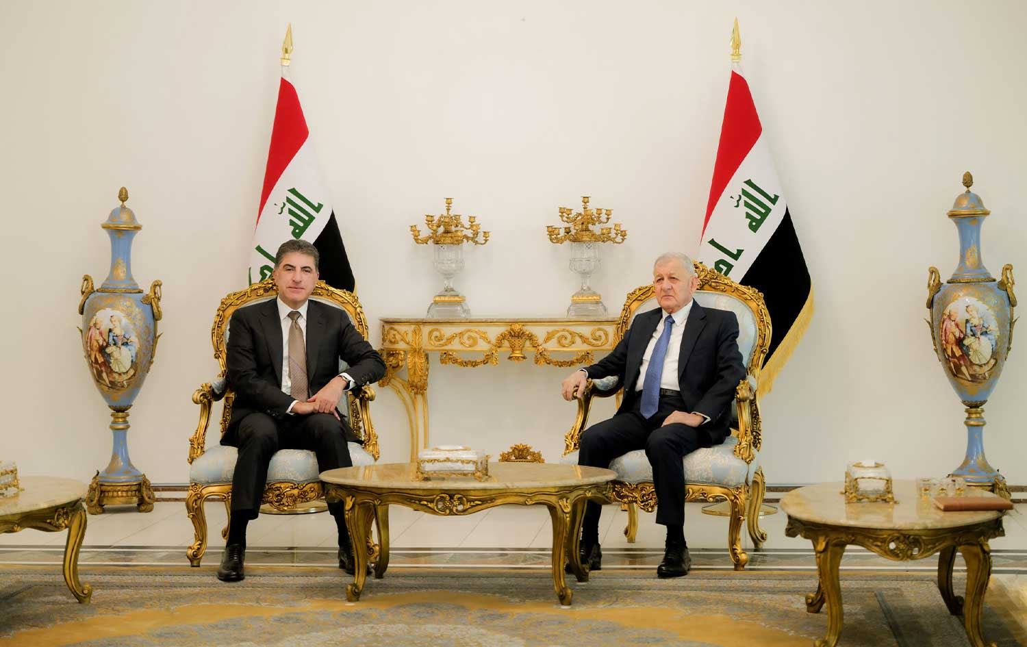 سەرۆکی هەرێمی کوردستان و سەرۆککۆماری عێراق لە بەغدا کۆبوونەوە، سەرۆکایەتیی هەرێمی کوردستان دەڵێت، چارەسەرکردنی کێشەکانی ههولێر ـ بهغدا و چەند پرسێکی دیکە تاوتوێ کران و هەردوولا هاوڕابوون کە نابێت گوزهرانى خهڵكى ههرێمى كوردستان تێكهڵ به كێشه سياسييهكان بكرێت.