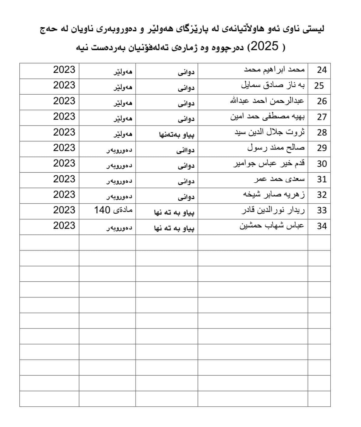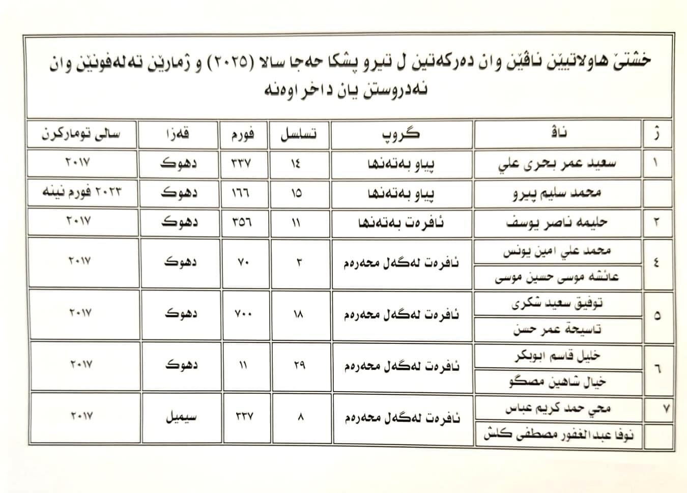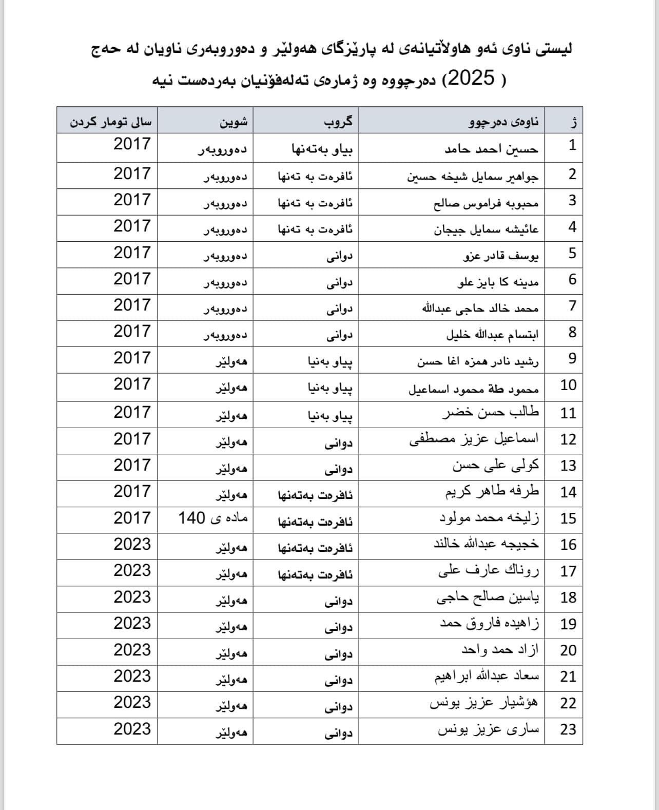 بەڕێوەبەرایەتیی حەج و عومرەی هەرێمی کوردستان، ئەمڕۆ و دوێنێ لە رێگەی فەیسبووکەوە ناوی ئەو 53 کەسەی بڵاوکردووەتەوە.