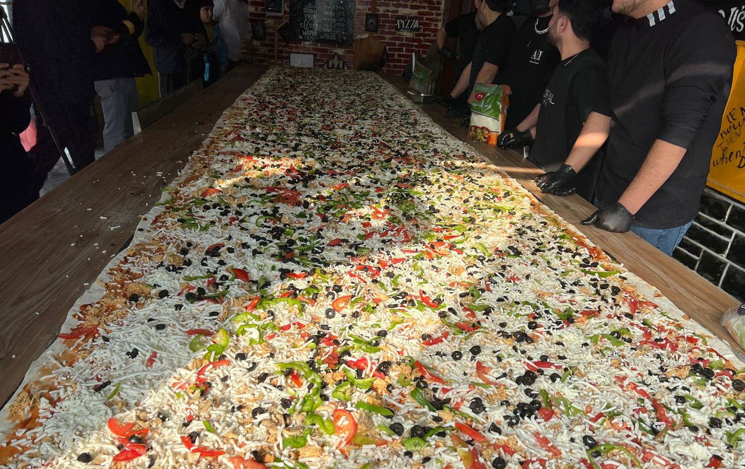 شێفێک لە حاجیاوا ''گەورەترین'' پیتزا لەسەر ئاستی عێراق و هەرێمی کوردستان دروست دەکات و دەڵێت، درێژیی پیتزاکە زیاتر لە حەوت مەترە.