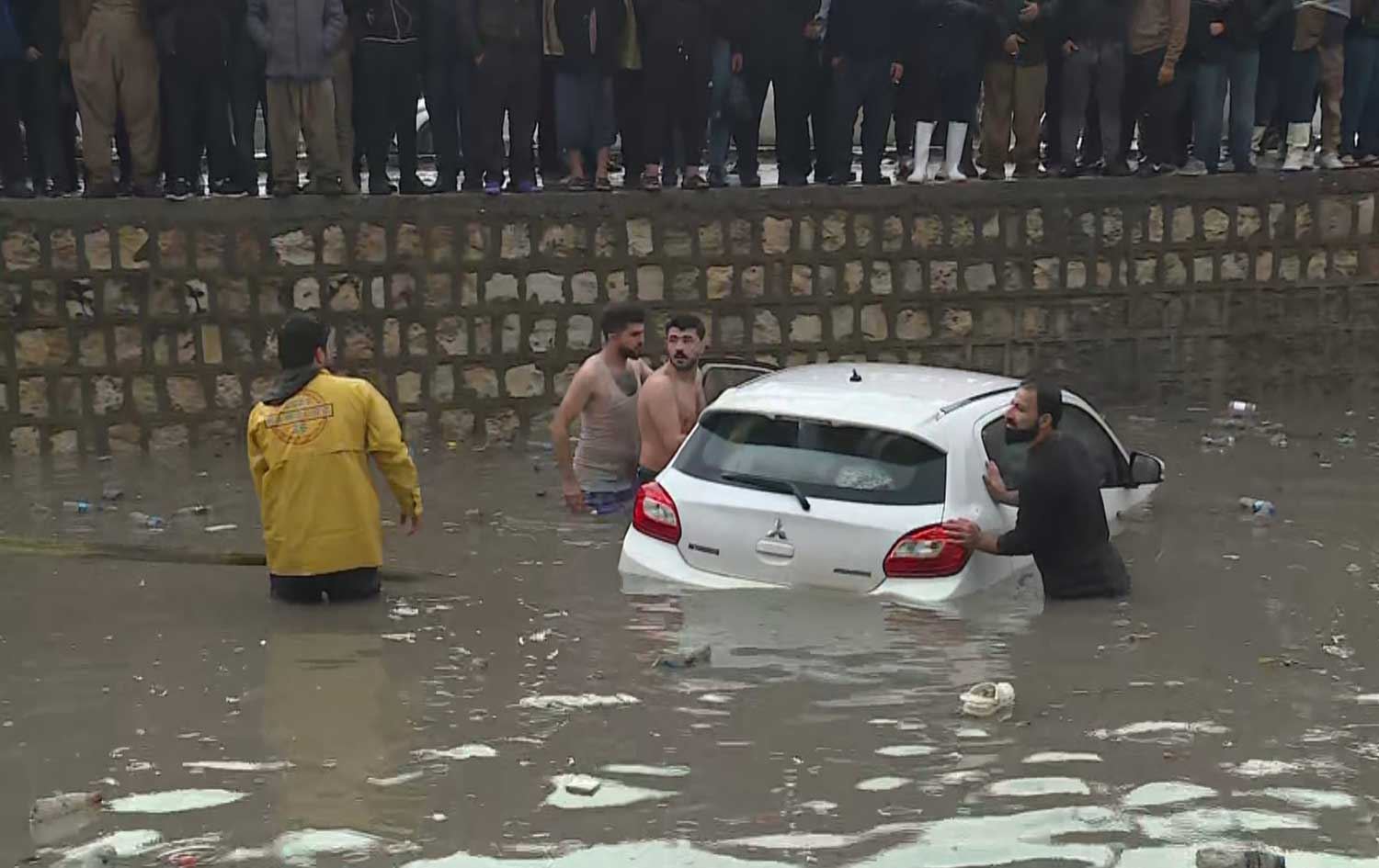 بەهۆی بارانبارینی بەخوڕ لە هەولێر لەژێر پردی سەیداوە ئاو پەنگیخواردووە و ئاستی ئاوەکە هێندە بەرزبووەتەوە چەند ئۆتۆمبێلێک ژێرئاو کەوتوون.