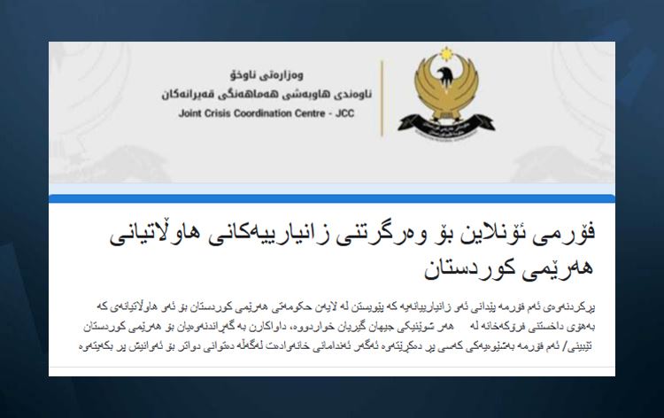وەزارەتی ناوخۆ و فەرمانگەی پەیوەندییەکانی دەرەوەی حکومەتی هەرێمی کوردستان، فۆڕمێکی تایبەت بە وەرگرتنی زانیاری بۆ زیاتر کارئاسانی بۆ هاونیشتمانیان کە لە فڕۆکەخانەکانی وڵاتان گیریان خواردووە رادەگەیێنن.