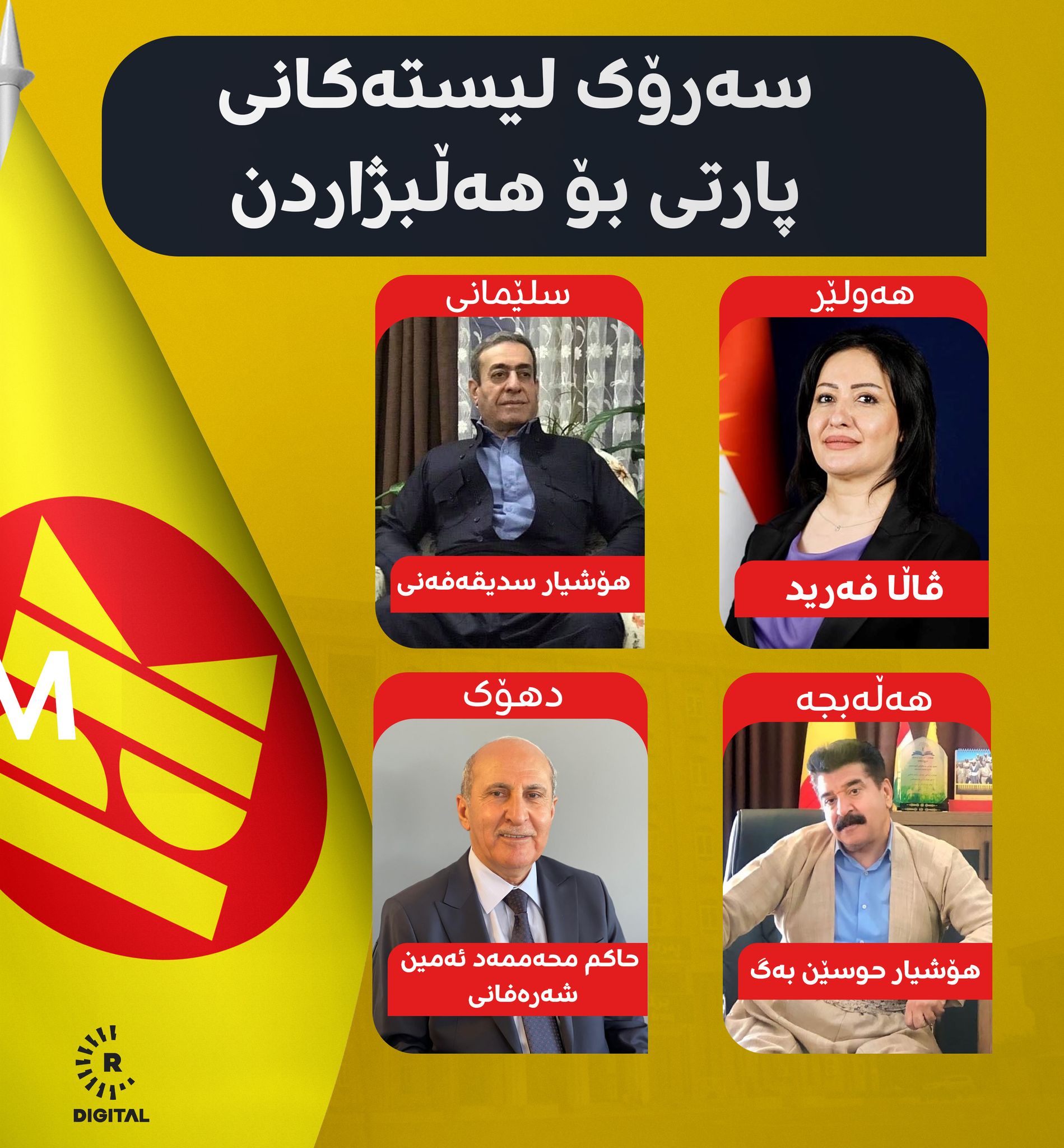 رووداو ناوی سەرۆکی لیست و بەربژێرانی پارتی دیموکراتی کوردستان بۆ هەڵبژاردنی خولی شەشەمی پەرلەمانی کوردستان ئاشکرا دەکات.