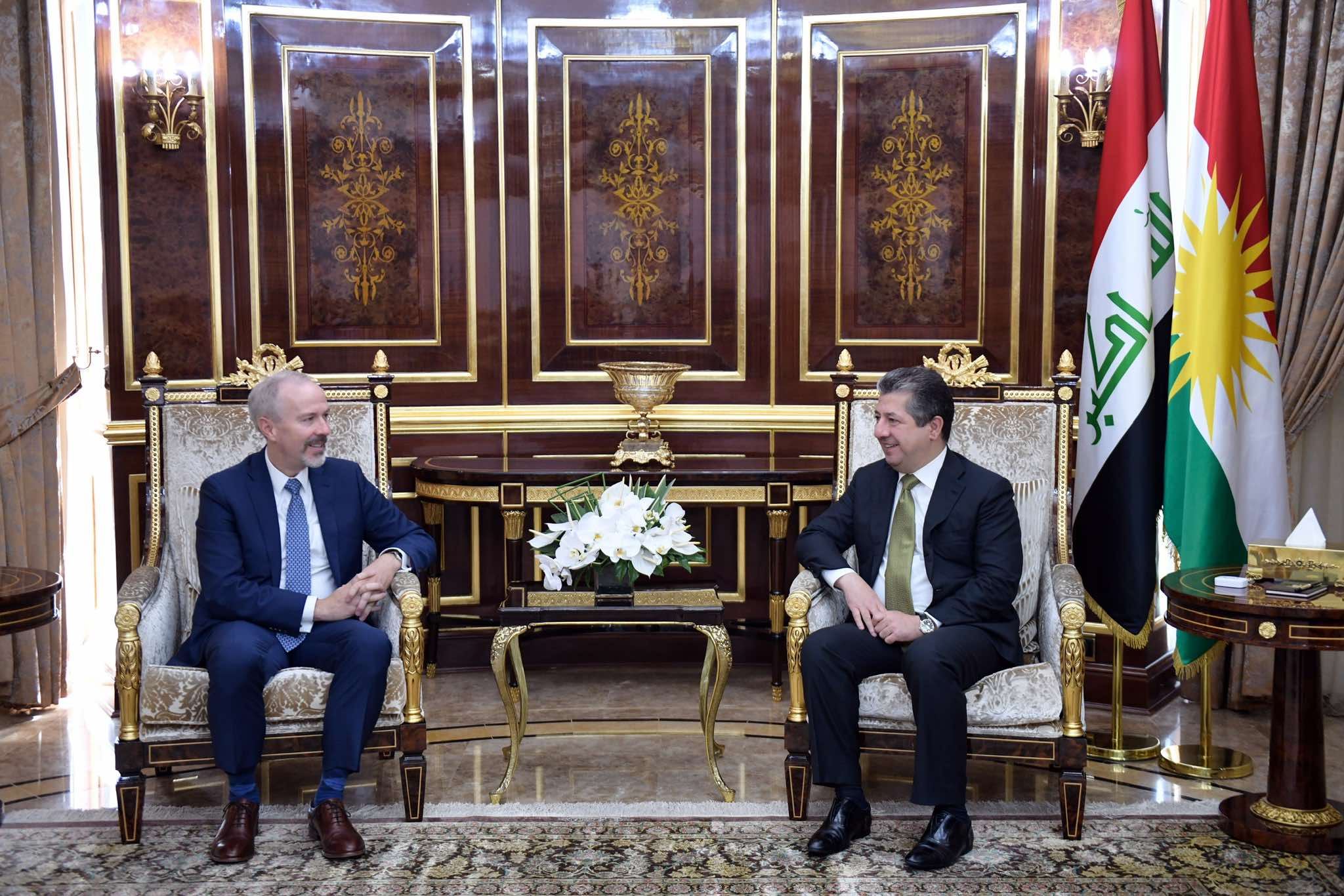 مەسرور بارزانی، سەرۆکی حکومەتی هەرێمی کوردستان و ستیڤن بیتنەر، کۆنسووڵی گشتیی نوێی ئەمریکا