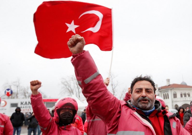 ژمارەیەک کارمەند لە ئیستەنبووڵ بۆ داواکردنی مووچەی بەرزتر خۆپێشاندان دەکەن، لە ساڵی 2022. وێنە: Reuters