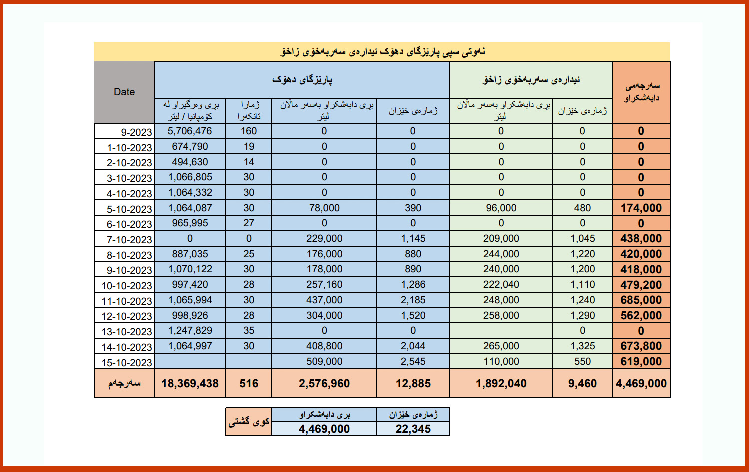 بەگوێرەی دوایین ئاماری وەزارەتی سامانە سرووشتییەکان، کە لە 19ـی ئاداری 2023 بڵاوکراوەتەوە، لەو ماوەیەدا زیاتر لە 383 هەزار خێزان لە ناوچە شاخاوییەکان، بەرمیلێک نەوتیان بە نرخی 103 هەزار و 500 هەزار دینار وەرگرتووە.