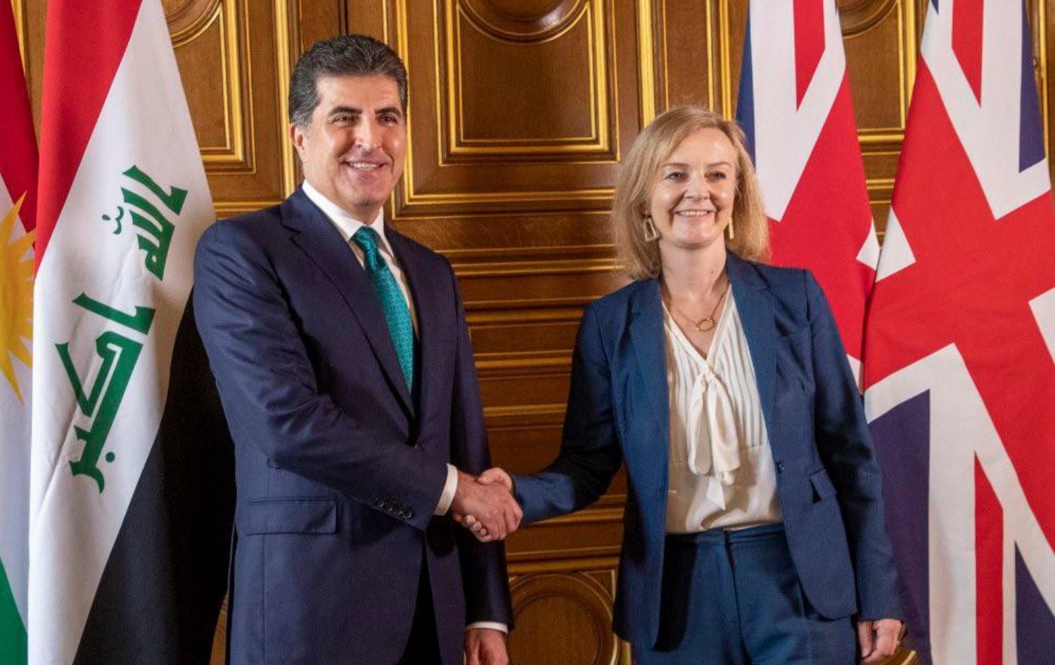 نێچیرڤان بارزانی، سەرۆکی هەرێمی کوردستان ئێوارەی ئەمڕۆ پێنجشەممە 16ی ئەیلوولی 2021 لە تویتێکدا رایگەیاند، "لەگەڵ لیز ترەس، وەزیری نوێی دەرەوەی بەریتانیا کۆبوومەوە، لە یەکەمین کۆبوونەوەی خۆیدا وەکو باڵاترین دیپلۆماتی بەریتانیا و بەبۆنەی وەرگرتنی پۆستە نوێیەکەیەوە پیرۆزباییم لێکرد. ئێمە گفتوگۆمان لەبارەی چۆنێتیی بەرەوپێشبردنی پەیوەندییە بەهێزەکانمان و پاڵپشتیی بەریتانیا بۆ هەرێمی کوردستان، سەقامگیریی ناوچەکە و پرسە هەنووکەییەکانی دیکە کرد".