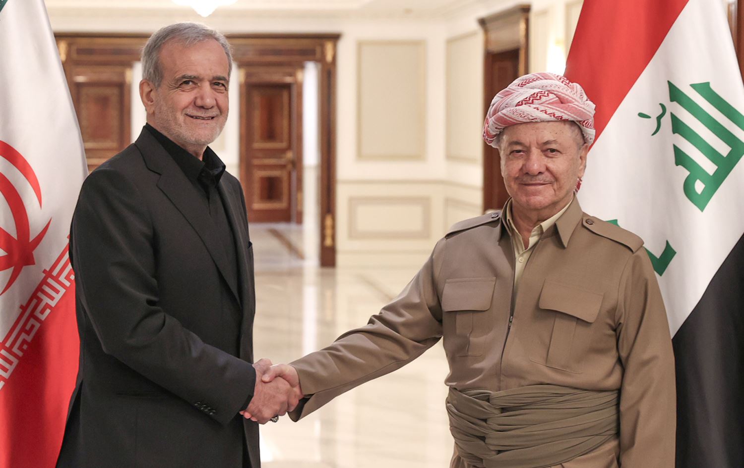مەسعود پزیشکیان دەڵێت، خۆی و سەرۆک مەسعود بارزانیش لە مهاباد لەدایکبوون و "لەخۆڕا شەڕیان لەنێوان ئێمە دروستکردووە.. بەڵام پەیوەندییەکانمان باش دەکەین و یارمەتیی یەکدی دەدەین". pic.twitter.com/T1M1wKHZYF