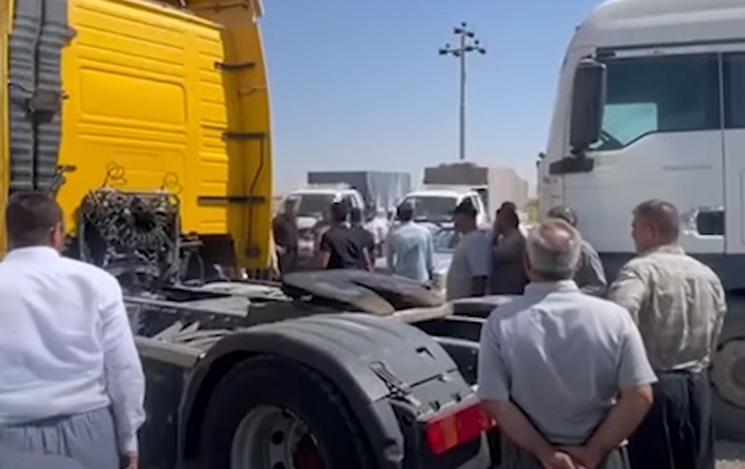 دیمەنێکی داخستنی رێگەی باوەمەحموود لەلایەن شۆفێرانی بارهەڵگرەوە. وێنەکە لە تۆڕە کۆمەڵایەتییەکان وەرگیراوە