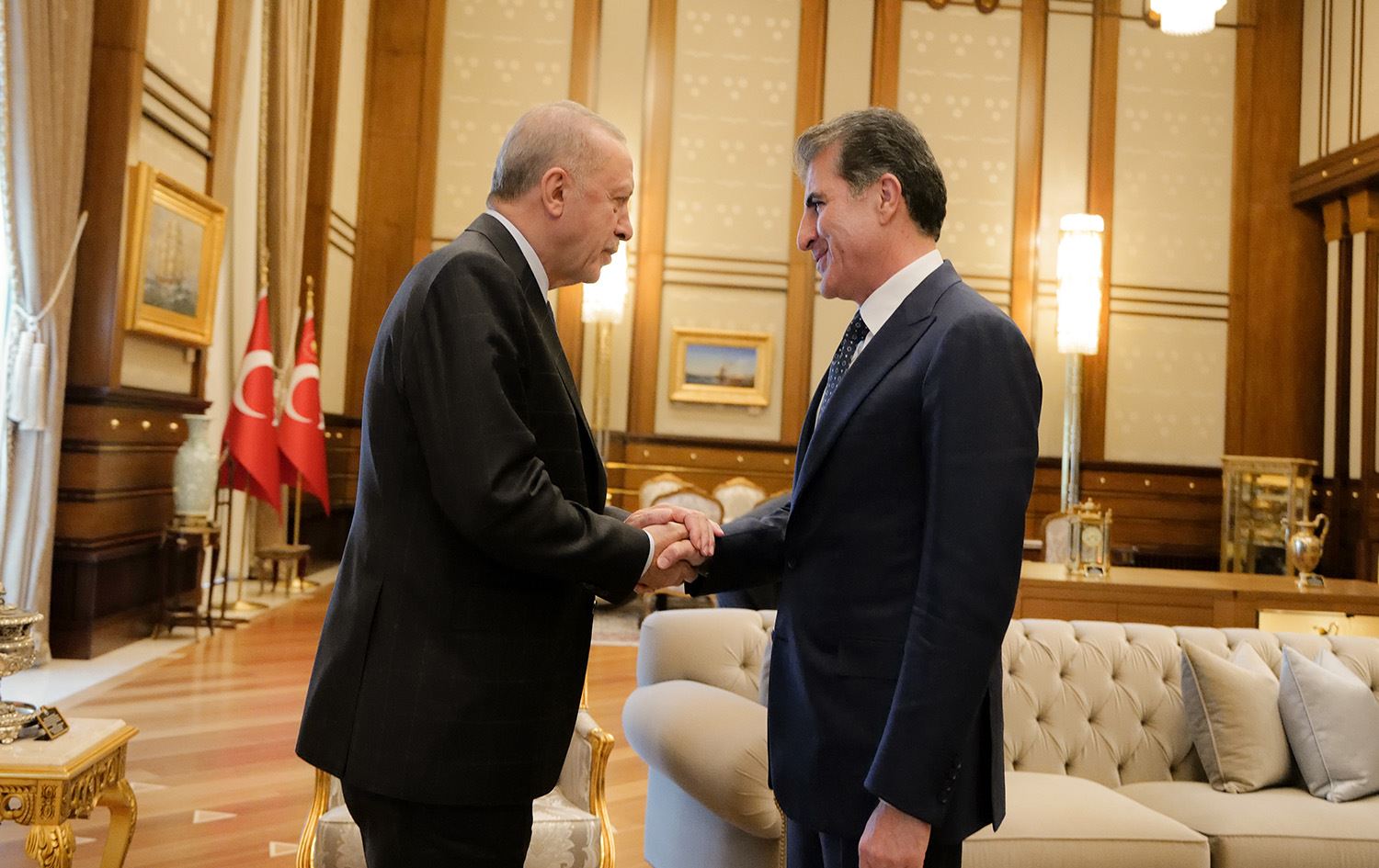 نێچيرڤان بارزانى، سهرۆكى ههرێمى كوردستان، لهگهڵ رهجهب تهيب ئهردۆغان، سهرۆككۆمارى توركيا.