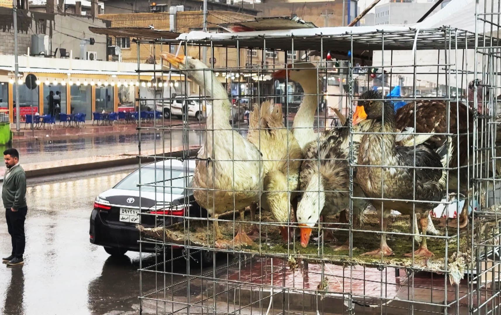 یوسف مەعرووف، دووکانی فرۆشتنی پەلەوەری هەیە و دەڵێت، "بازار زۆر باشە. ئەمڕۆ بارانباری، کە باران دەبارێت خواستێکی زۆر لەسەر عەلەشیش و قاز دەبێت. ئەمڕۆ نرخی یەک کیلۆ گۆشتی قاز ئەمڕۆ 11 هەزار دینارە."