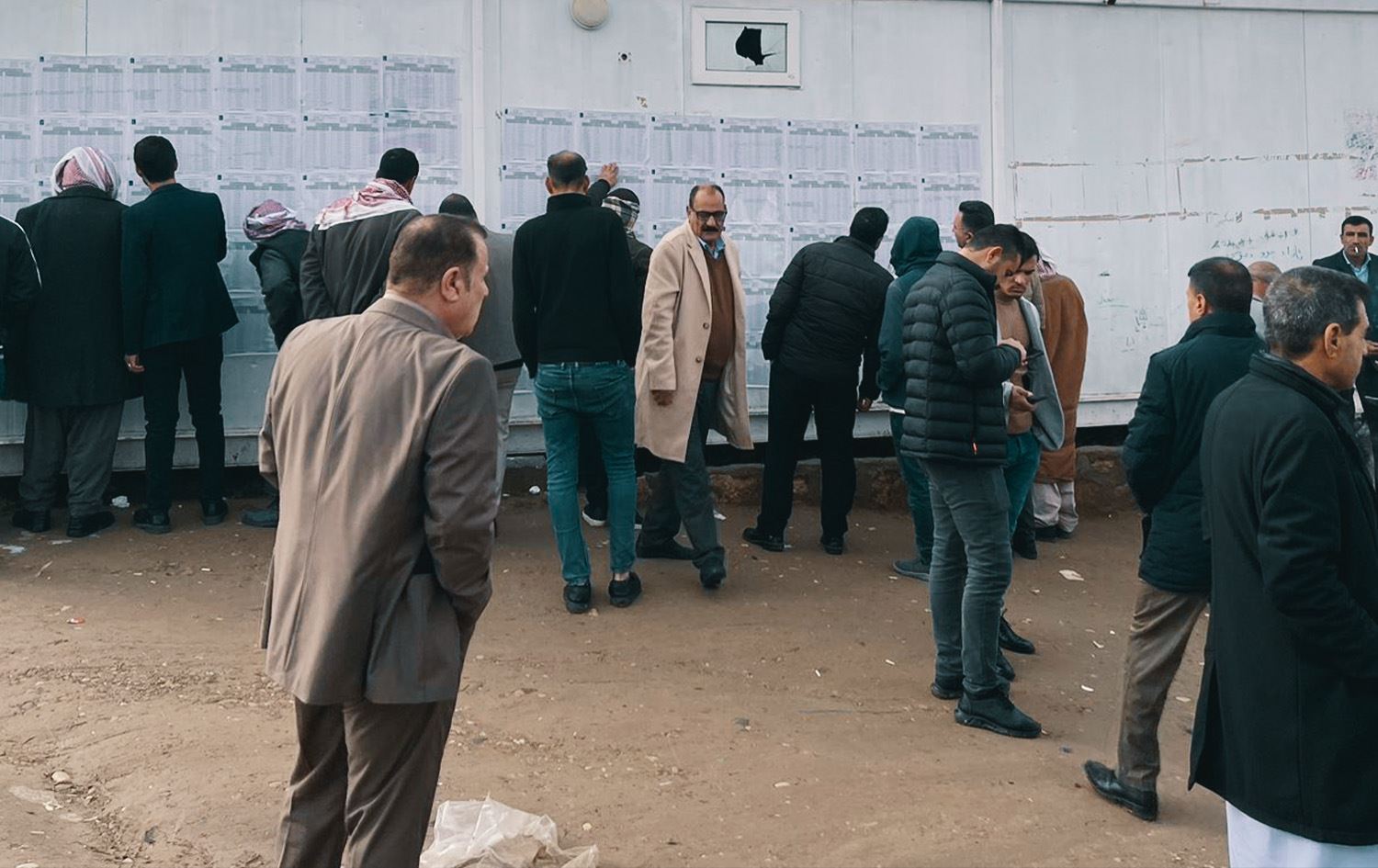 کۆمەڵێک هاونیشتمانی (16-12-2023) لەکاتی گەڕان بەدوای ناوەکانیان لە بنکەی دەنگدانی تایبەت لە سێمێل، وێنە: رووداو