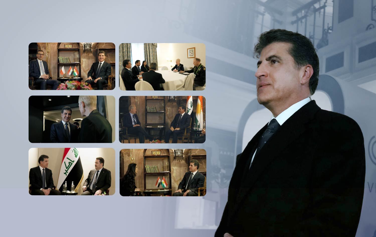 سەرۆکی هەرێمی کوردستان لە رۆژی یەکەمی کۆنفرانسەکەدا دیدار و کۆبوونەوەی لەگەڵ ژمارەیەک سەرکردە و بەرپرسانی وڵاتان هەبوو