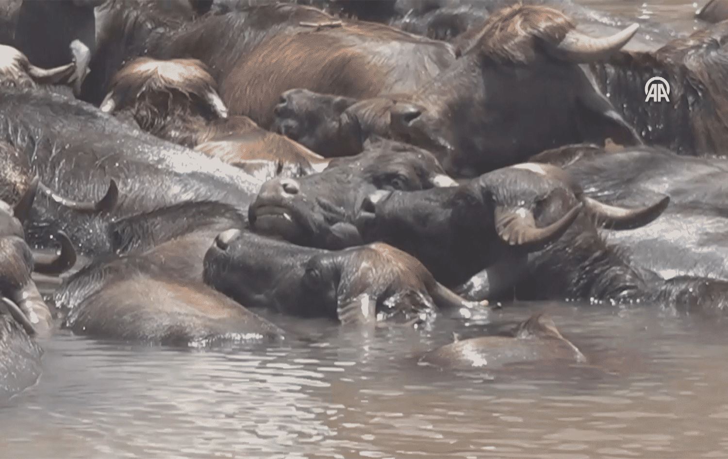 لە ئامەدی باکووری کوردستان گامێشەکان دەبردرێنە نێو چەم و رووبارەکان بۆ ئەوەی لە گەرمای هاویندا نەمرن و فێنکیان بێتەوە.