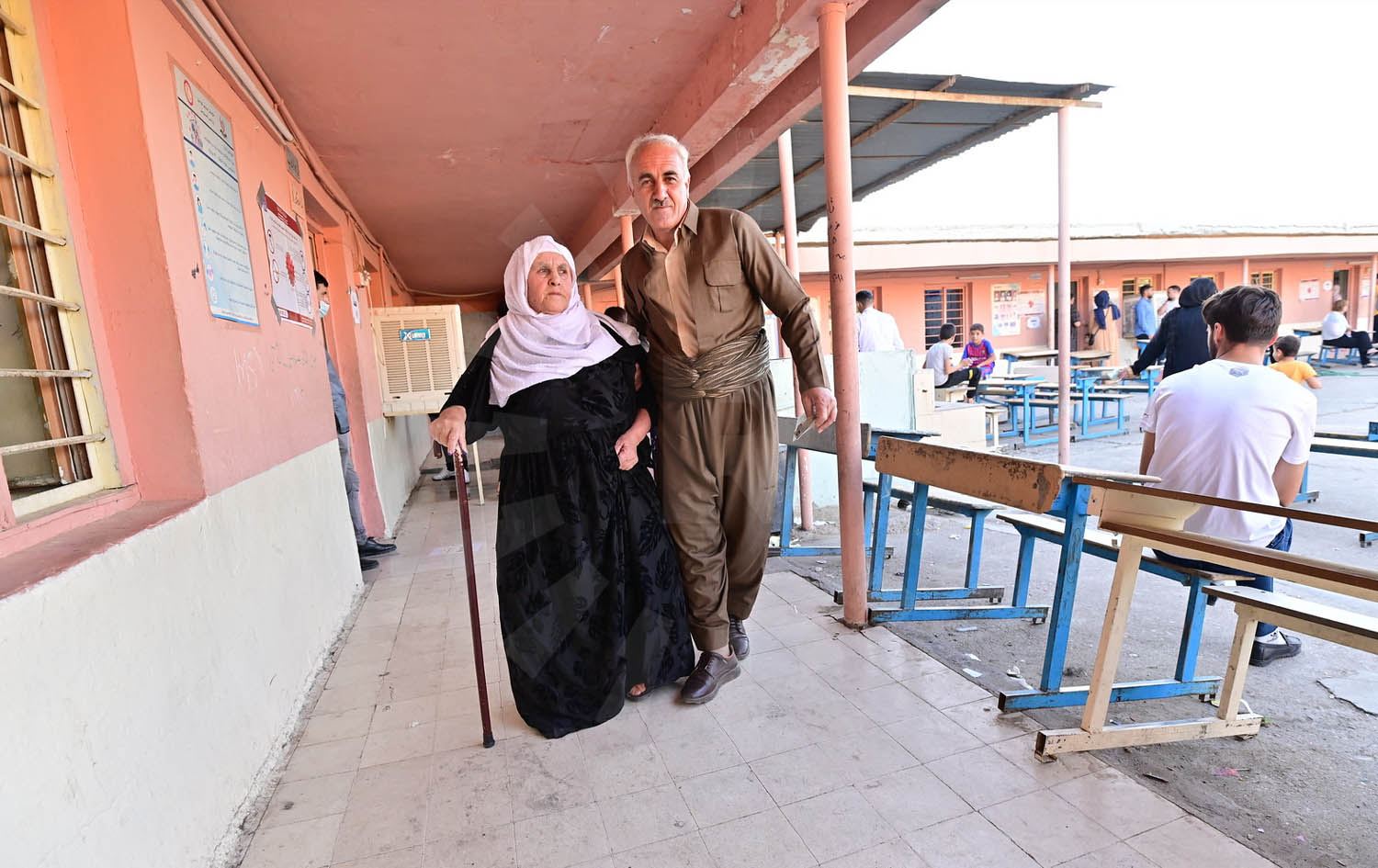 دوو دەنگدەر لەکاتی چوون بۆ بنکەیەکی دەنگدان لە هەڵبژاردنی رابردوو. وێنە: بڵند تاهیر - رووداو/ئەرشیڤ