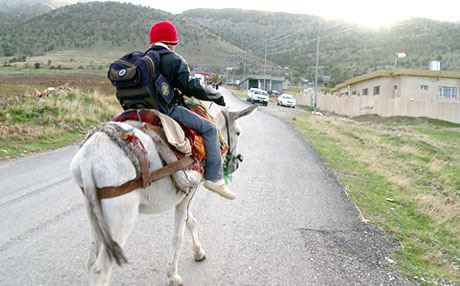 یوسف هەموو رۆژێ 5 كیلۆمەتر رێ بە سواری كەر دەبڕێ بۆئەوەی بگاتە گوندەكەی دراوسێیان كە قوتابخانەكەی ئەوی لێیە.