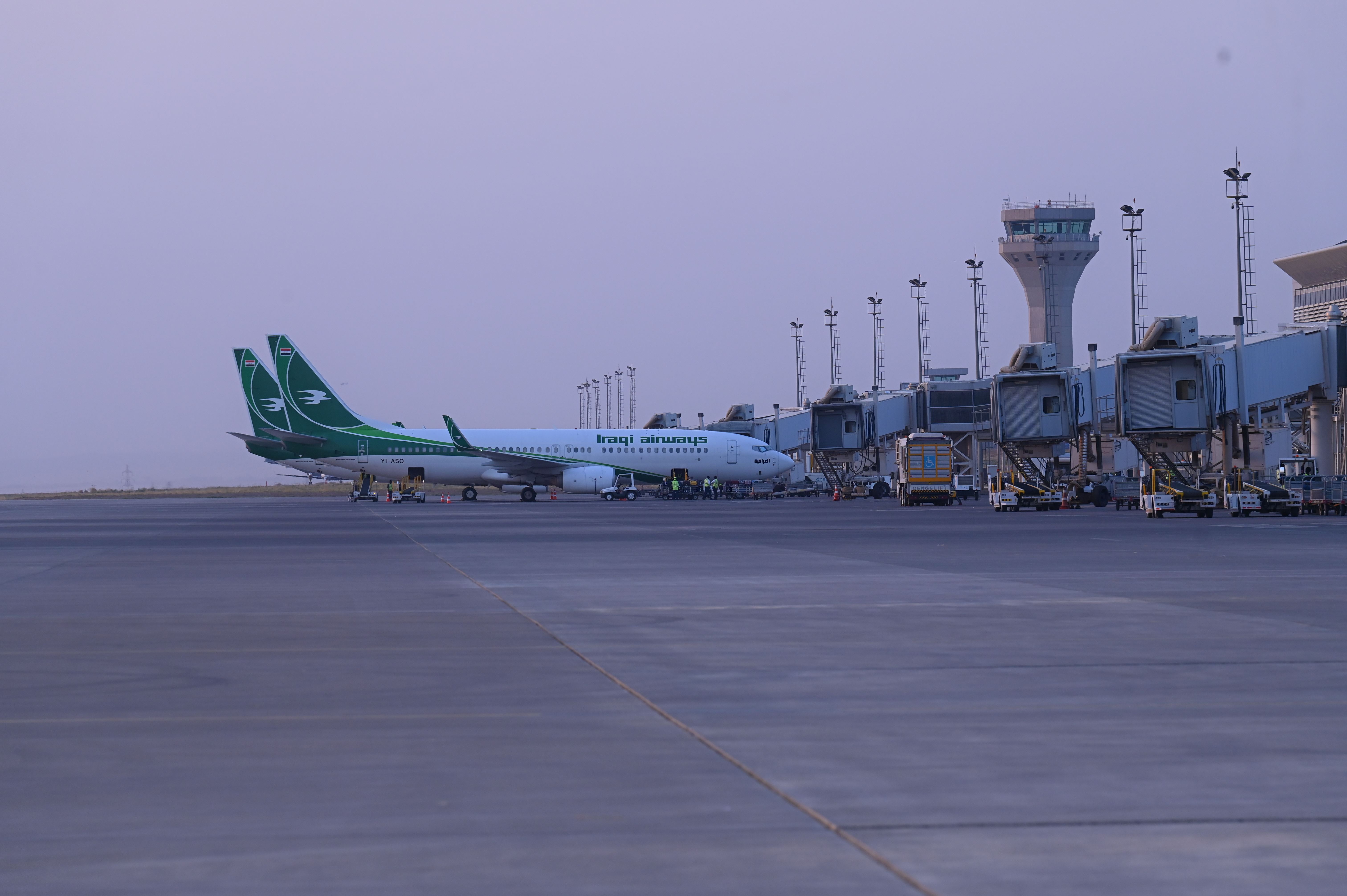 دوو فڕۆکەی هێڵی ئاسمانیی عێراقی لە فڕۆکەخانەی نێودەوڵەتیی هەولێر، وێنە: بڵند تاهیر - رووداو