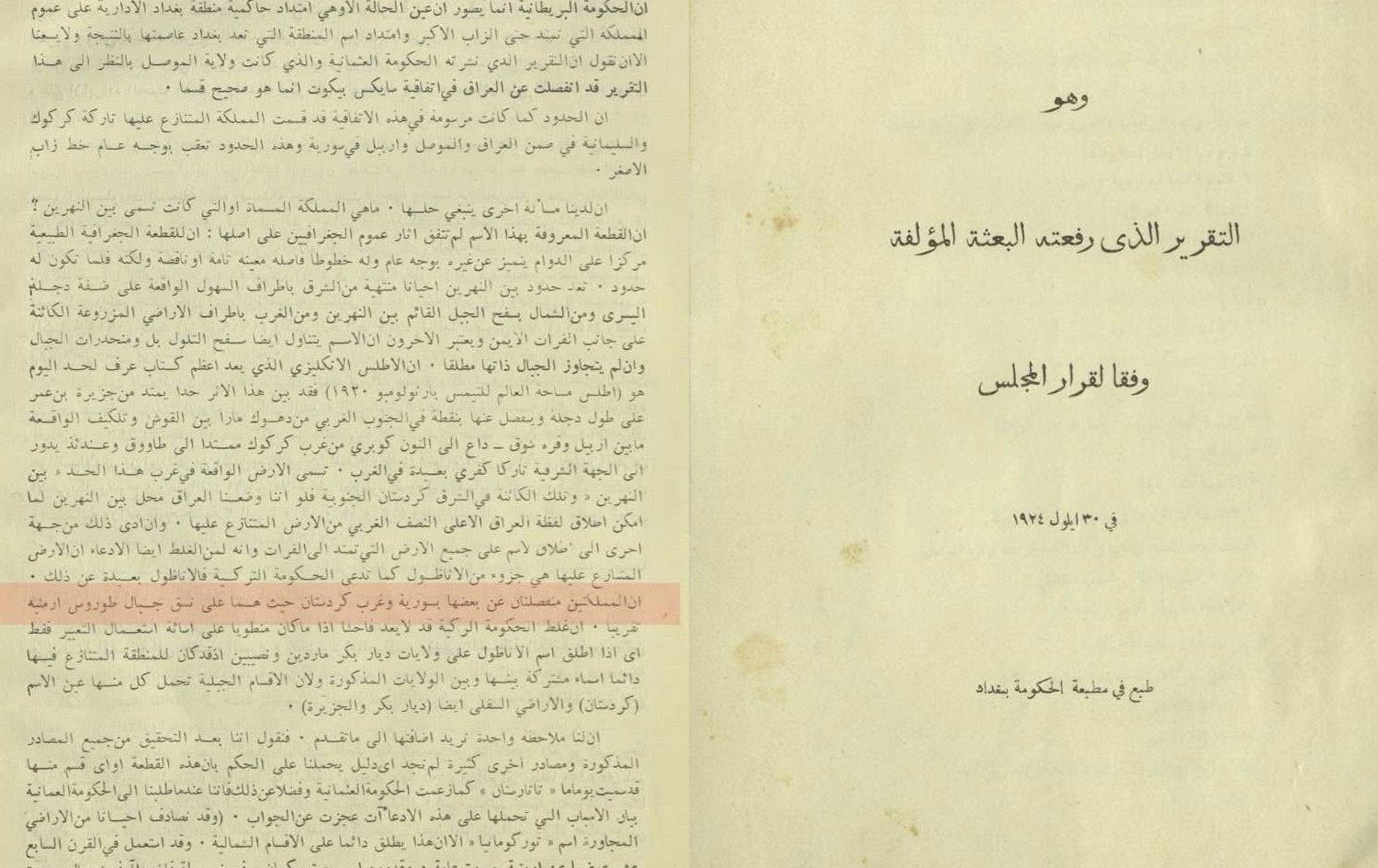 بەڵگەنامەیەکی دەگمەن کە مێژووەکەی بۆ زیاتر لە 100 ساڵ لەمەوبەر دەگەڕێتەوە، وردەکاریی ئەو راپۆرتە سیاسی و جوگرافییە دەخاتە روو کە کۆمەڵەی نەتەوەکان (عصبة الامم) سەبارەت بە کێشەی سنوورەکانی نێوان تورکیا و عێراق ئامادەی کردووە.