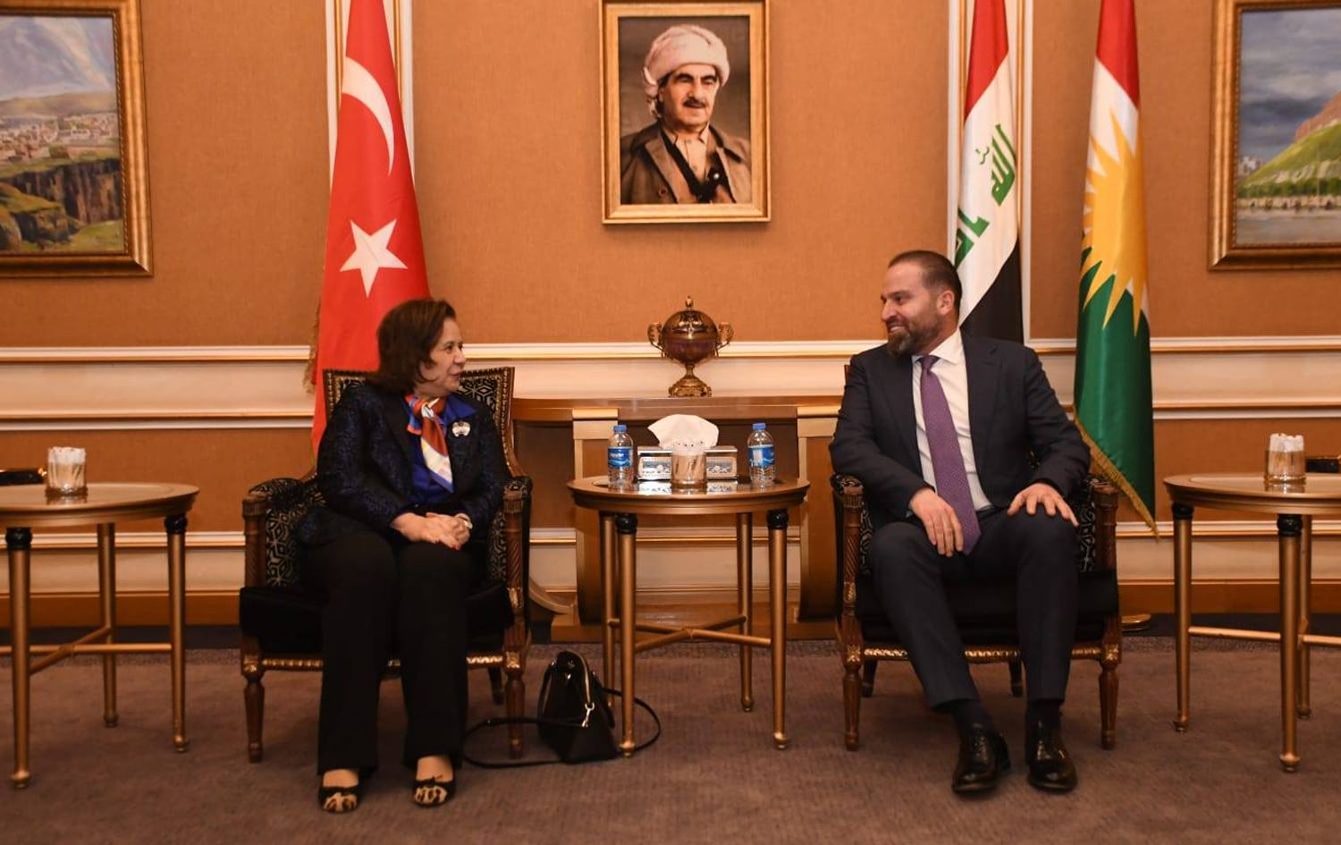 ئێوارەی ئەمڕۆ دووشەممە، 17-02-2025، ئایشە بەڕیس ئێکینجی، یاریدەدەری وەزیری دەرەوەی تورکیا بۆ کاروباری وزە و ئانل بۆرا ئینان باڵیۆزی تورکیا لە بەغدا و شاندی یاوەرییان بە سەردانێک گەیشتنە هەولێر.