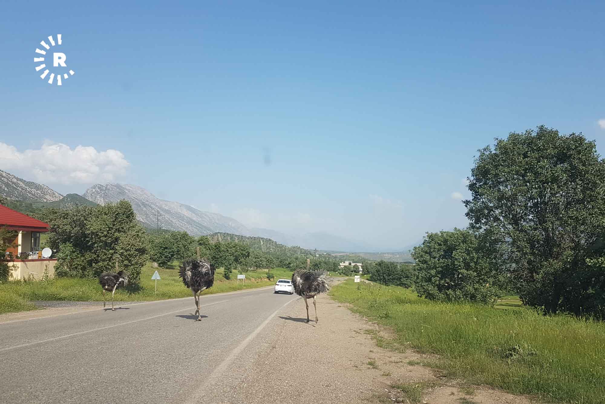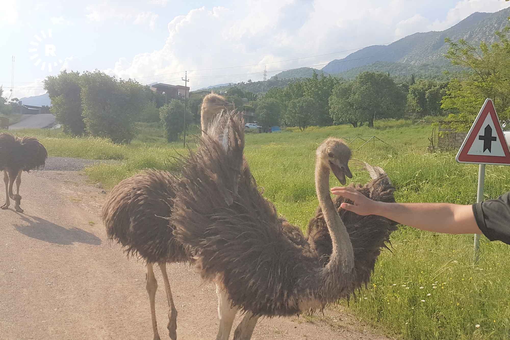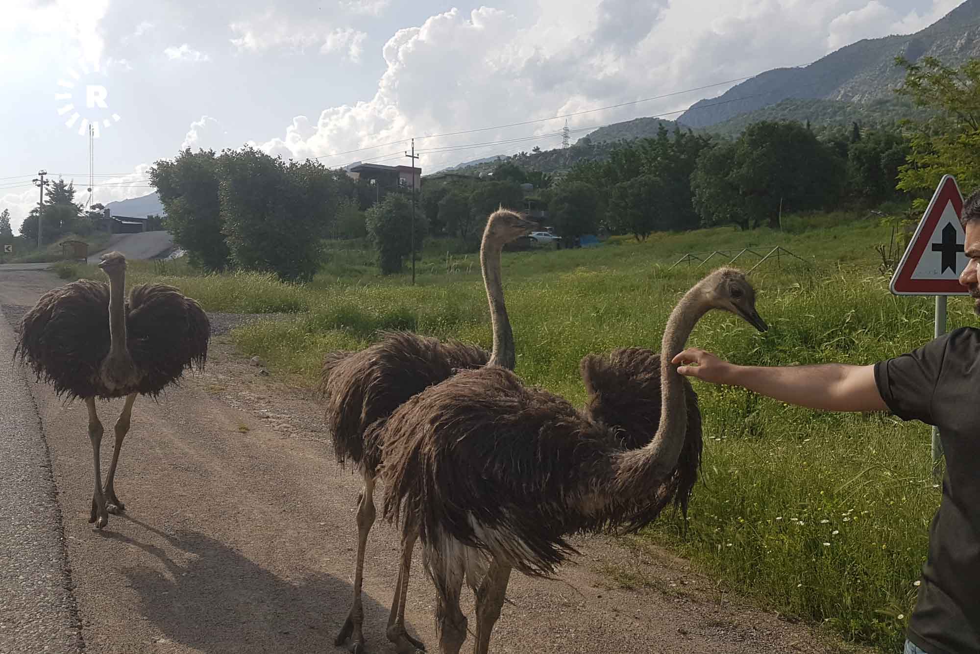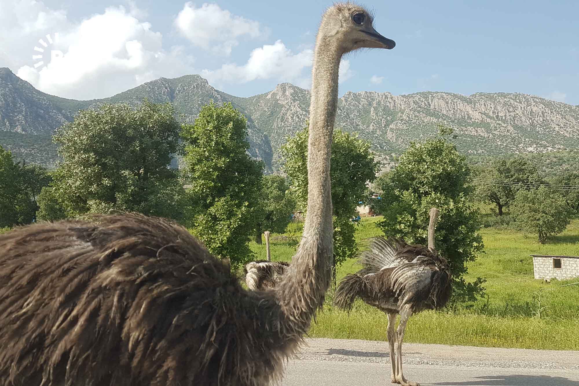 نزیکەی ساڵێکە لە گوندی برکاهینێ لە سنووری ناحیەی دێرەلووک، پیاوێک سێ نەعامە بەخێودەکات، کاتێک لە رێگەی دێرەلووکەوە بۆ شیلادزێ دەڕۆیت، ئەو نەعامانە لەسەر رێگە دەبیندرێن و لە ئۆتۆمبێلەکان نزیکدەبنەوە و زۆرجار رێگەکەش دەگرن.