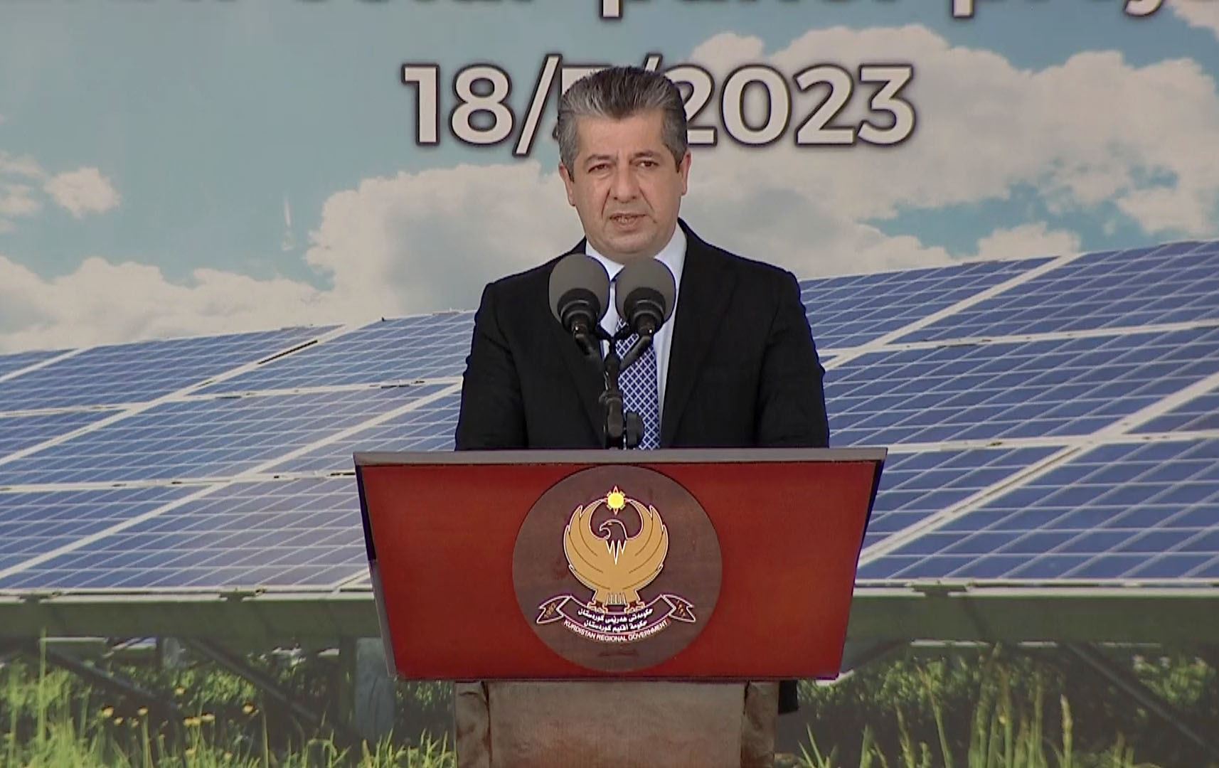 مەسرور بارزانی، سەرۆکوەزیرانی هەرێمی کوردستان لە هەولێر بەردی بناخەی پڕۆژەیەکی بەرهەمهێنانی کارەبای دانا کە بە وزەی خۆر کاردەکات. گوتی، پلانی حکومەت زیاتر خزمەتکردنی هاووڵاتییانە و "ئێمە بەشێکین لە خەڵک."