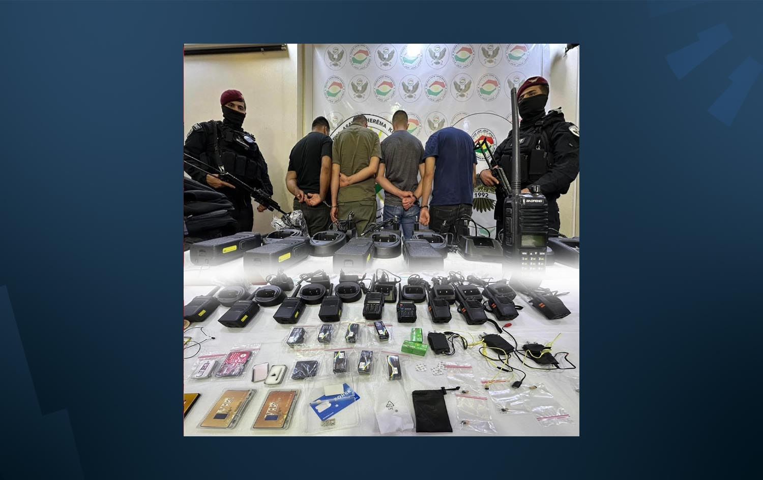 ئاسایشی هەولێر وێنەی تۆمەتبارەکان و ئەو کەلوپەلانەیشی بڵاوکردووەتەوە کە دەستی بەسەردا گرتووە