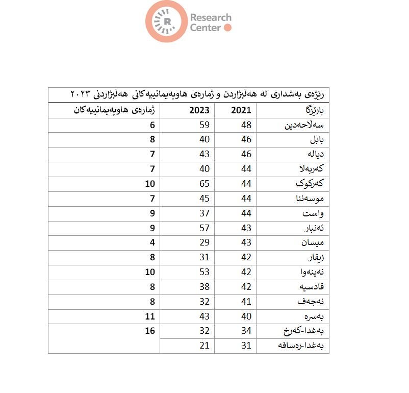 ژمارەی کورسیی لایەنەکان لە سەلاحەدین
