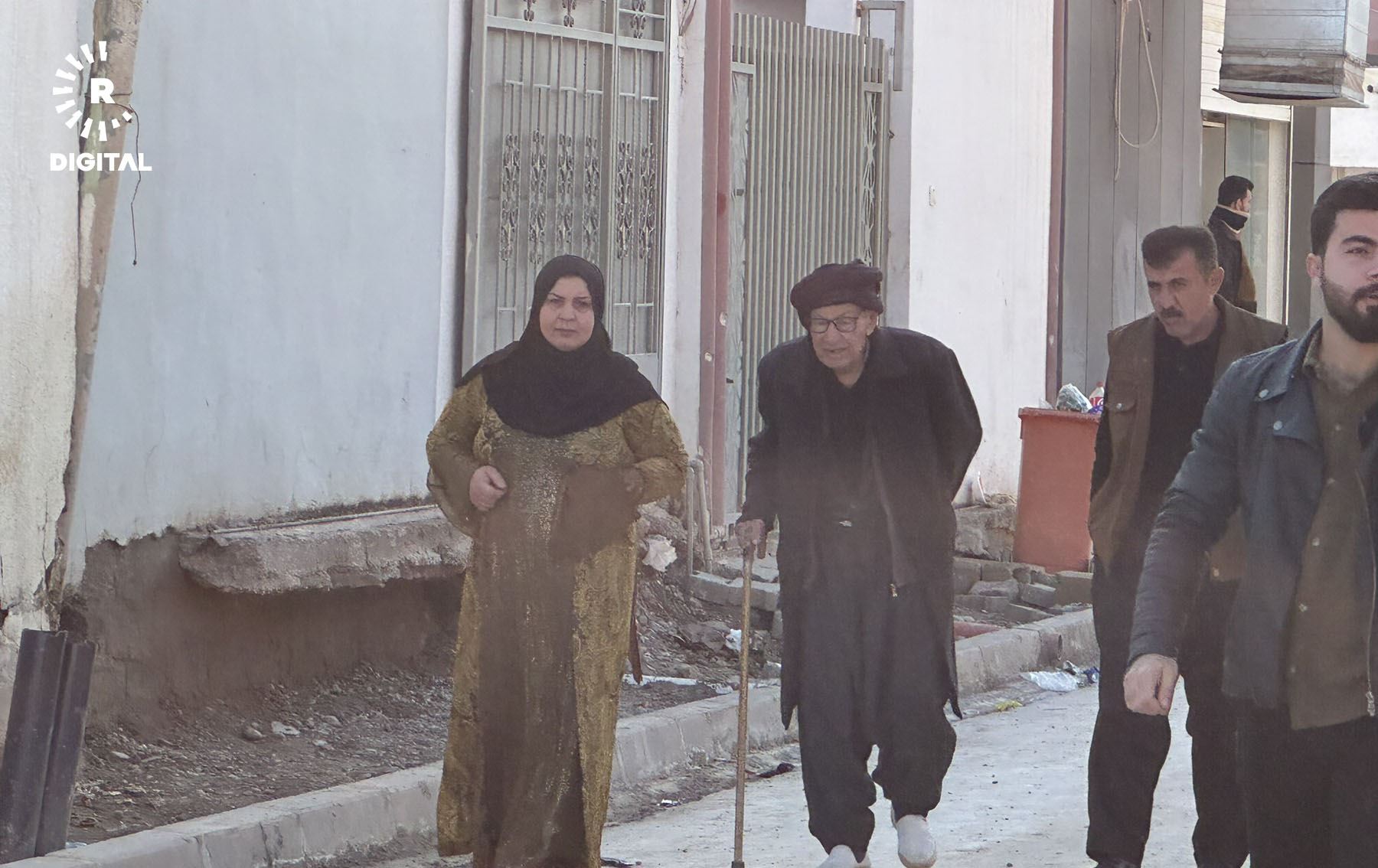 پیاوێکی بەتەمەن لە خورماتوو بە گۆچانەوە دەچێتە بنکەی دەنگدان بۆئەوەی دەنگ بدات. وێنە: پێشەوا بەختیار - رووداو